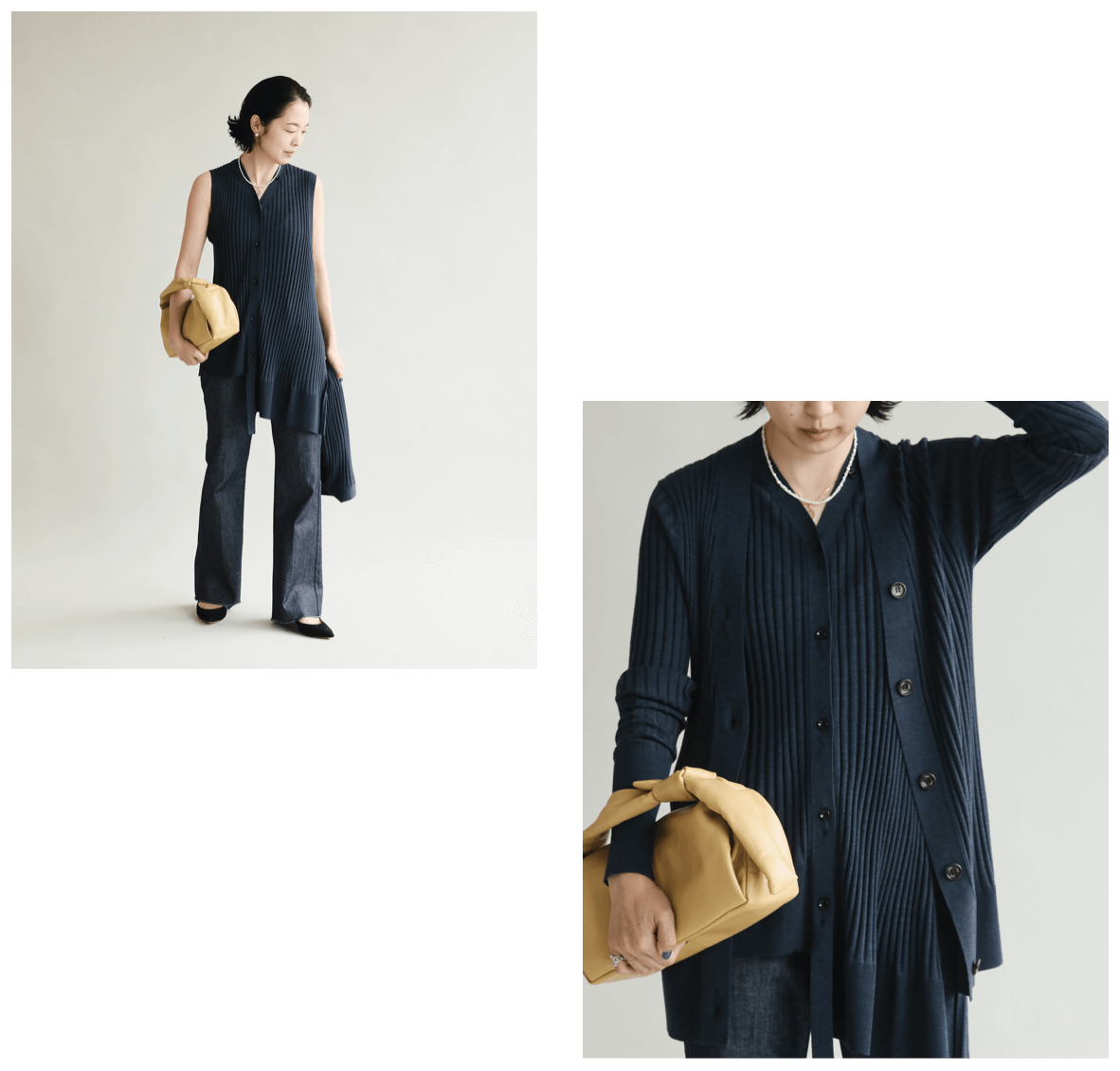 秋冬はニットをレイヤード。
