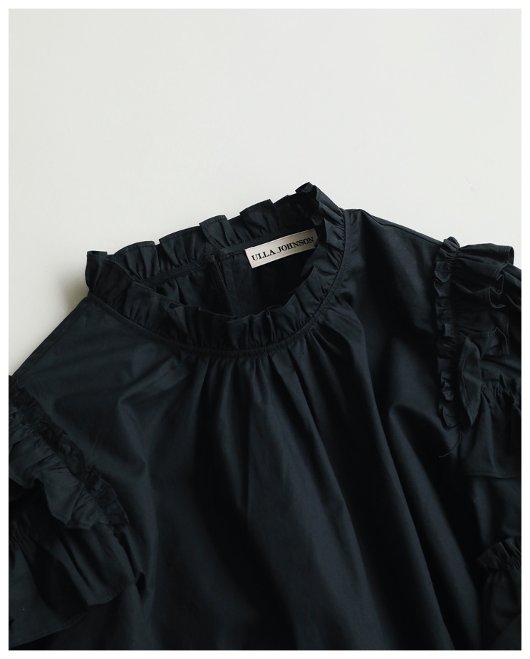 ブラックで大人らしくフリルが立体的なULLA JOHNSONのブラウスは、