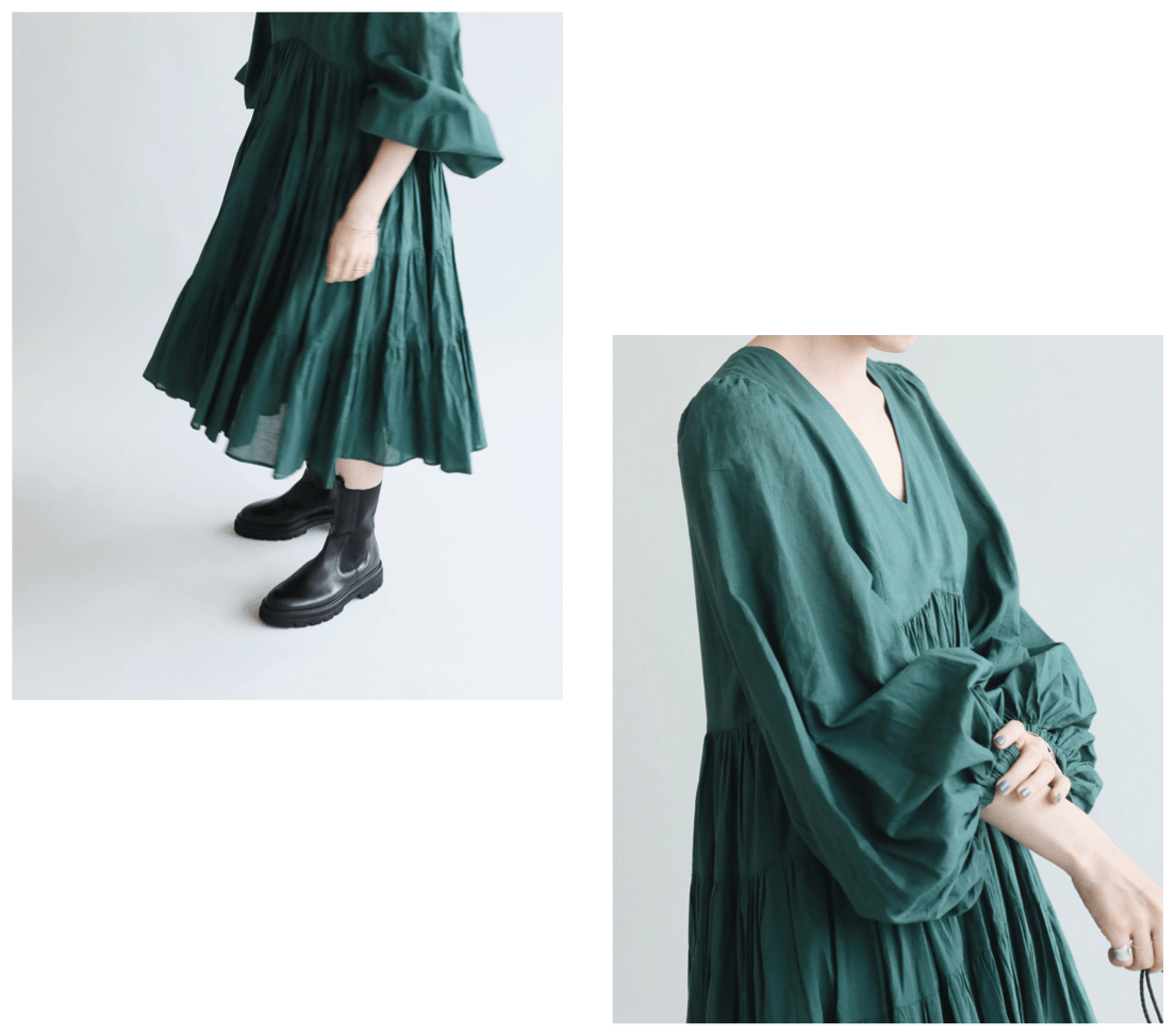 生地をたっぷり使ったティアードデザインと
