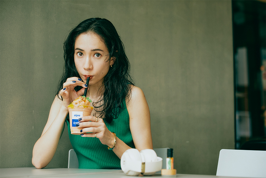 自分の変化がすべてデータに上がってきちゃうので、整体や美容鍼など、定期的なメンテナンスは心がけています。あと、たとえば仕事でSNSをやっている時間に、いかに“ながら”で筋トレをするか、とか。なんでも合理的に考えちゃう、せっかちな性格なんです……(笑)そういう意味では、このスムージーは勉強や読書をしながら栄養補給するのにぴったりかもしれませんね(笑)