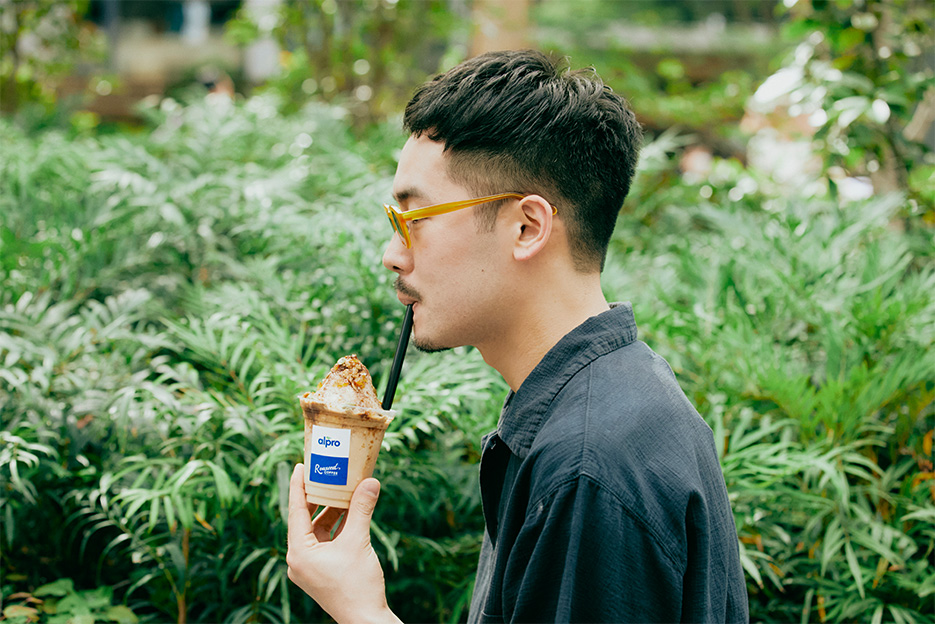 出た、オーツミルク!最近耳にすることが多くなってきましたよね。植物性のミルクってあっさりしているイメージでしたが、このスムージーの濃密な飲み口はミルクのコクからも来てるんでしょうね。じつは、以前豆乳やアーモンドミルクを日常的に飲んでいました。僕はもともと肌がすごく弱くて、 生活を改善しようとまわりのひとに聞いているなかで「甘酒が血流にいい」という話を聞いて。それからは植物性ミルクで割った甘酒を、毎朝1杯飲むようにしていた。昔に比べて、食に対する意識は徐々に変わってきている気がしますね。どうせ食うんだったら美味いもんを、なるべく無理なく味わって食べたい。そういうことの大事さに気づき始めた年頃です(笑)