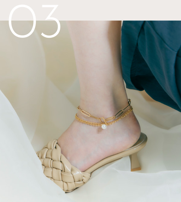 アンクレット&トゥリングをレイヤードして、大胆に飾りたい。