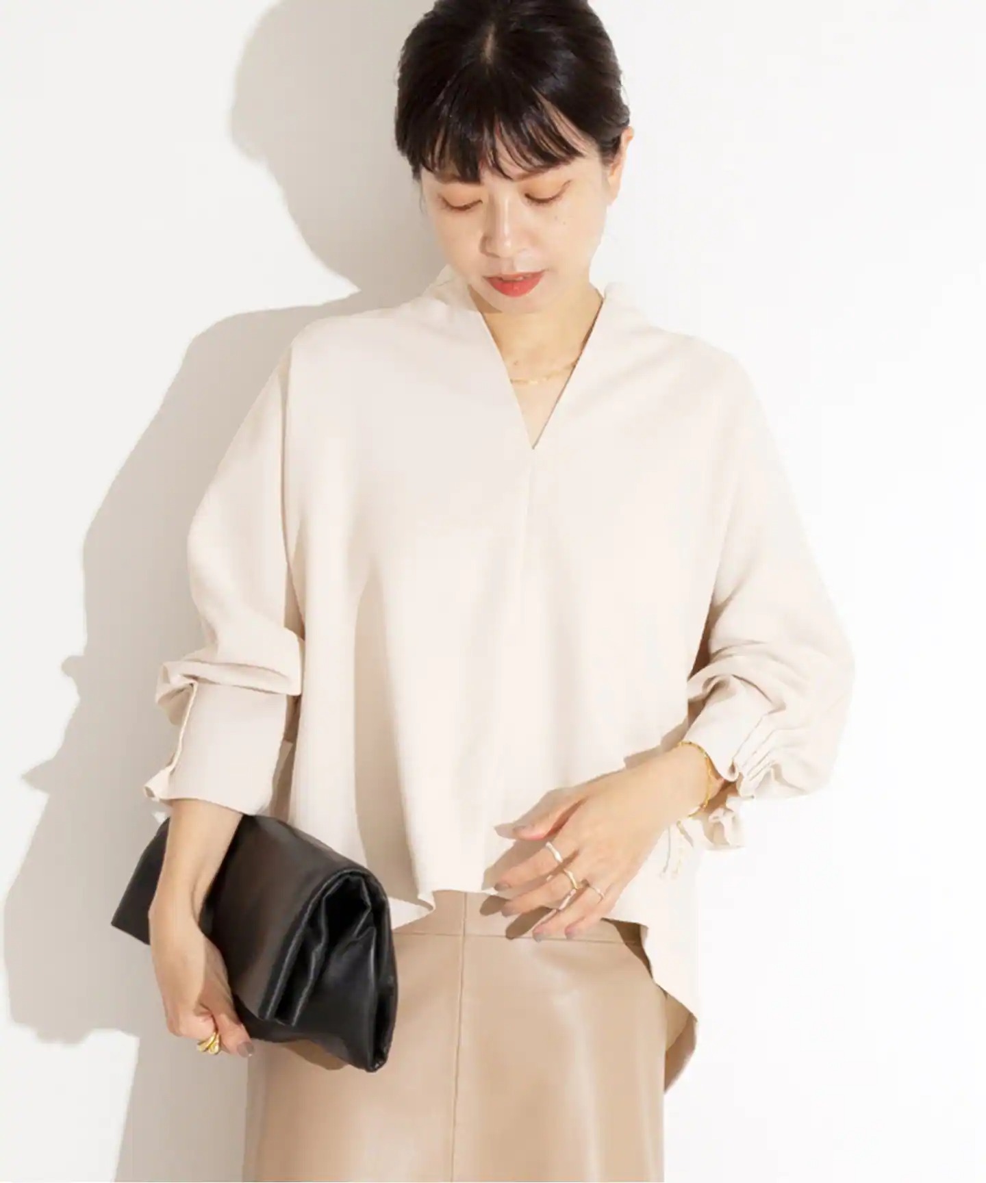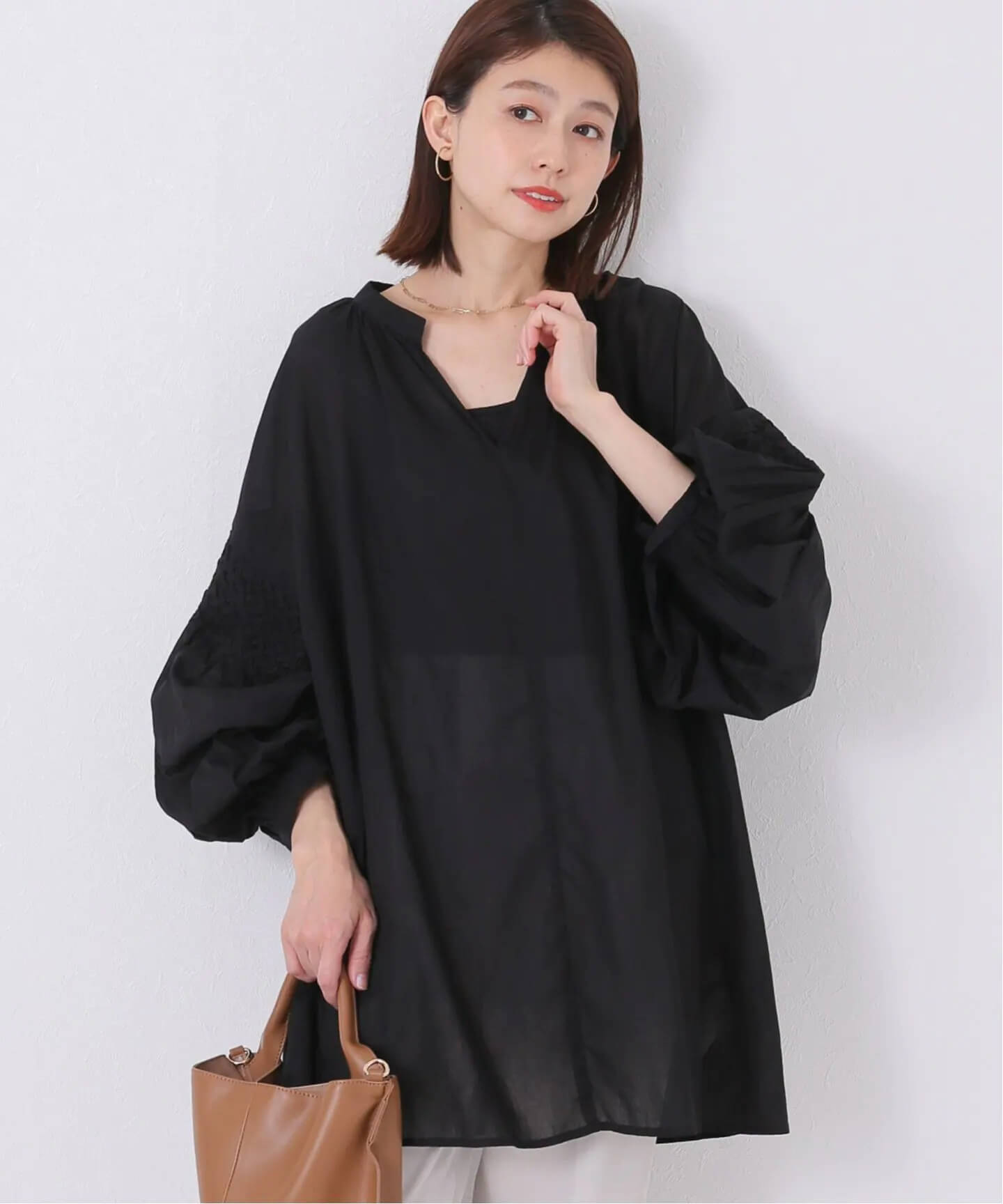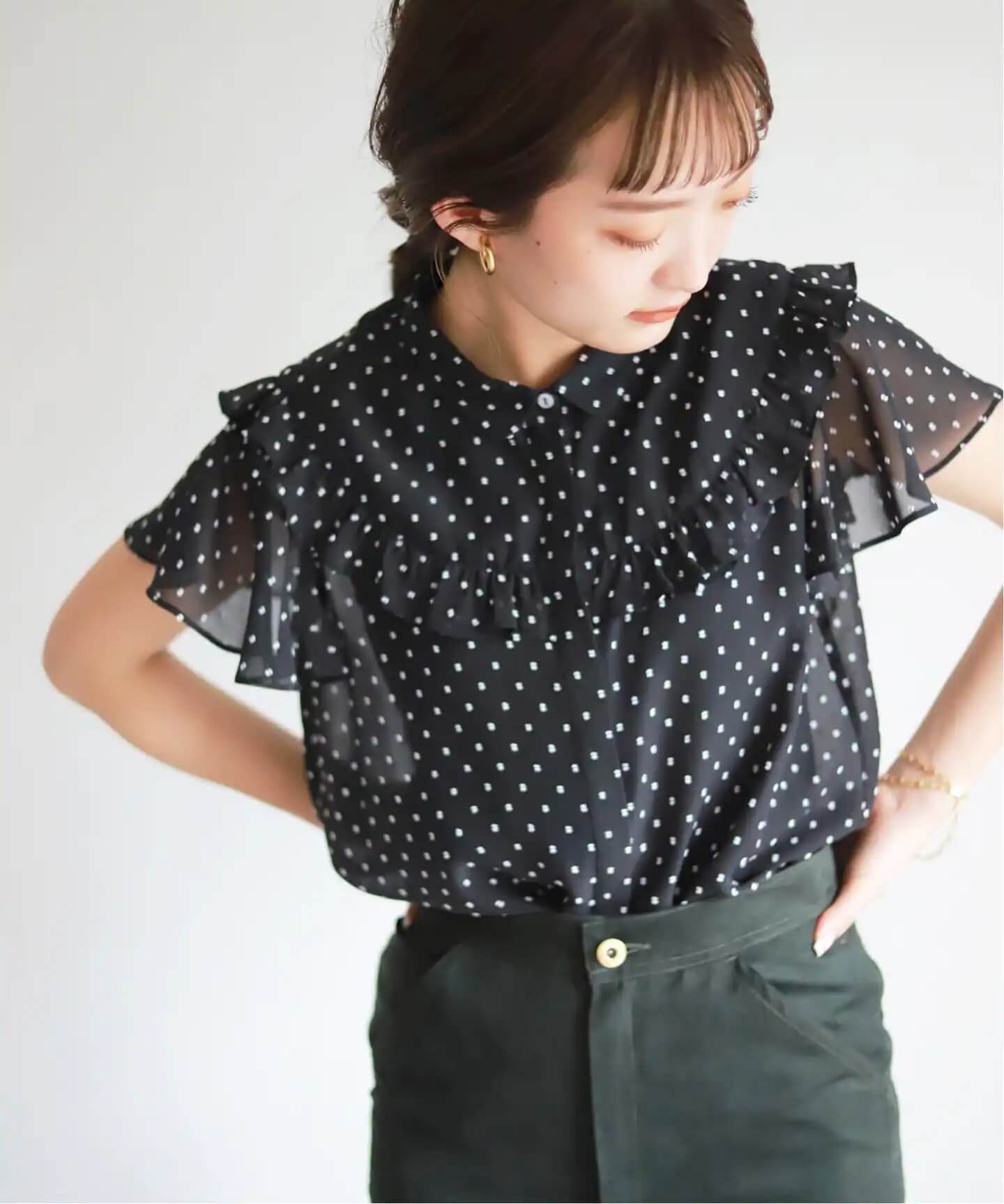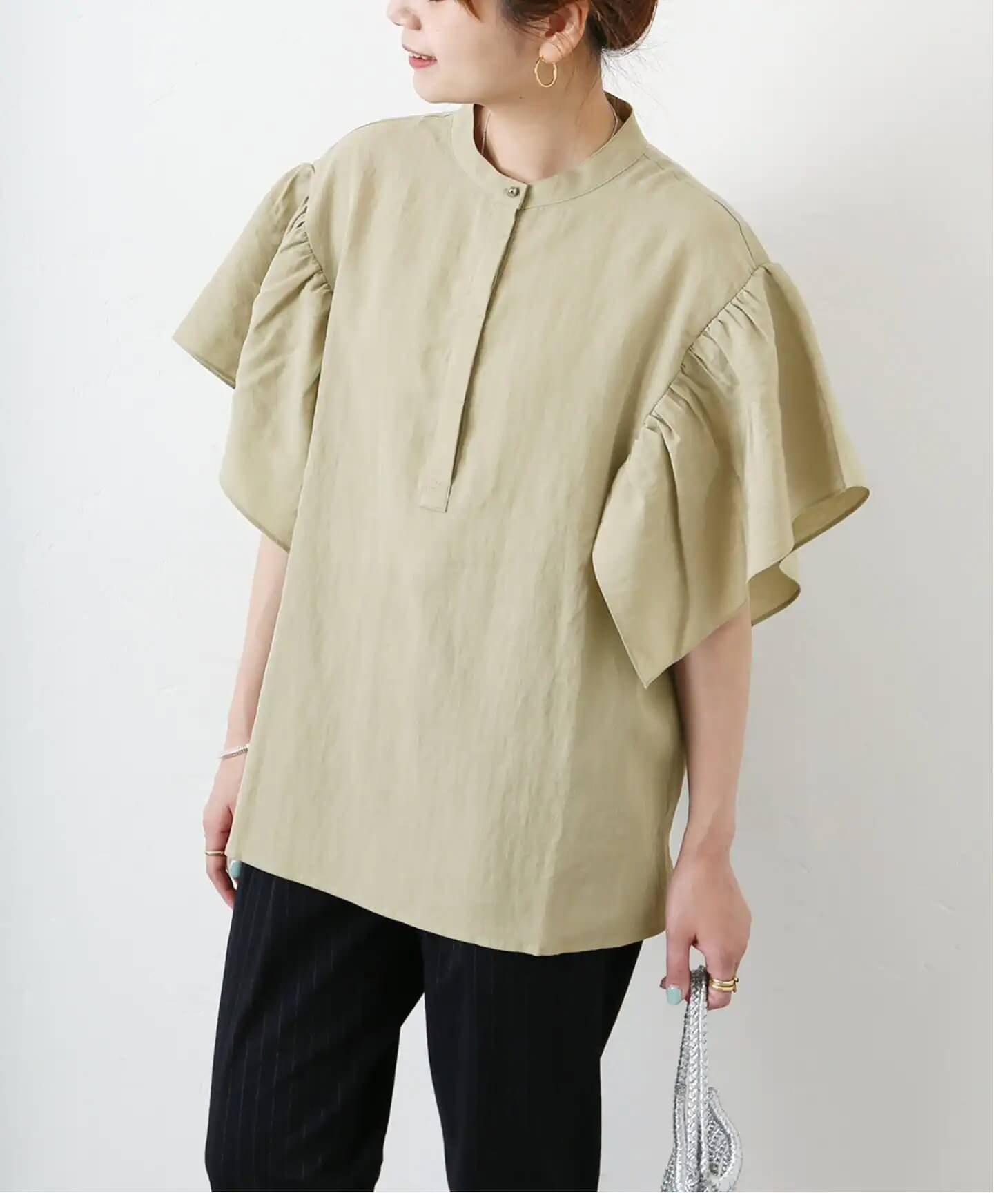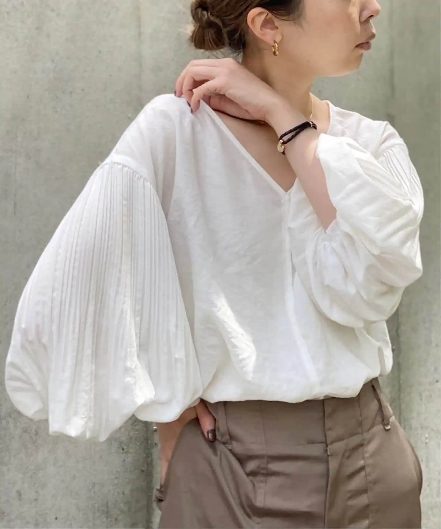 盛り袖ブラウスで