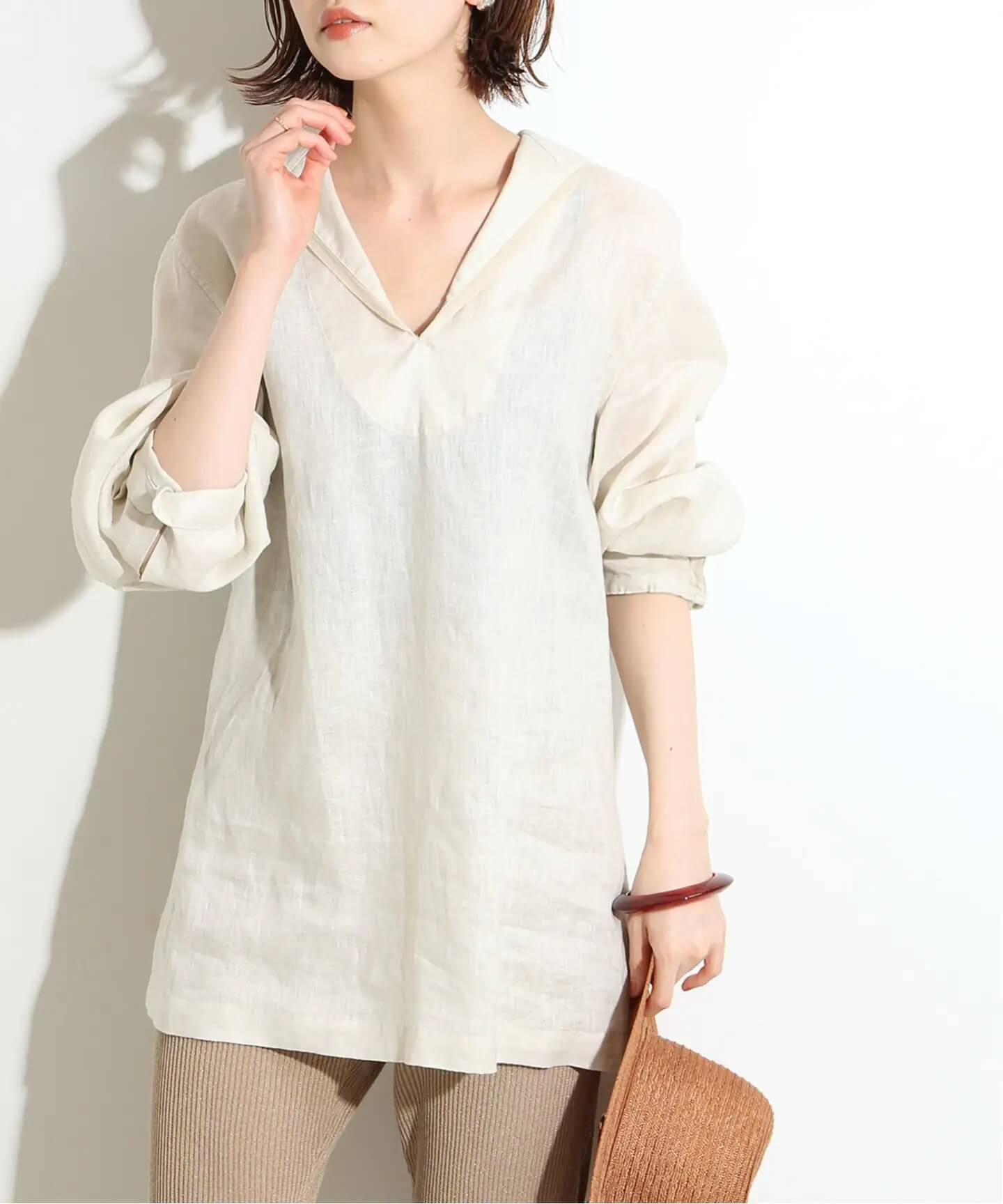 クールなスキッパーブラウス飾らない大人カジュアルにもってこいの