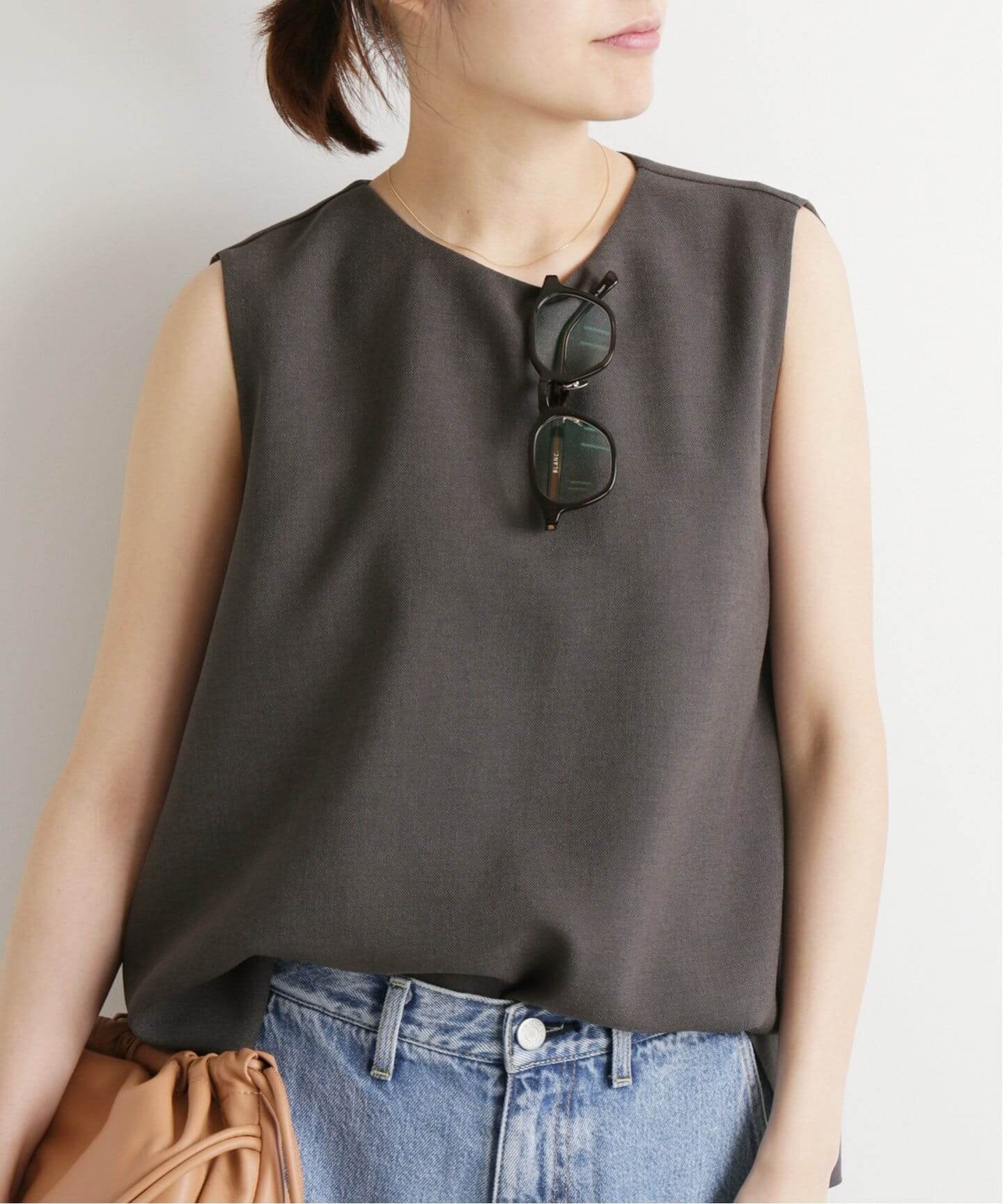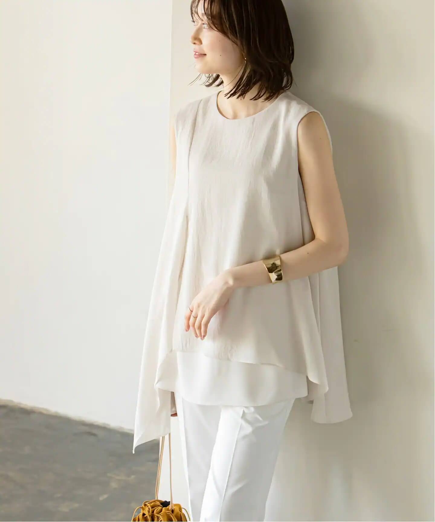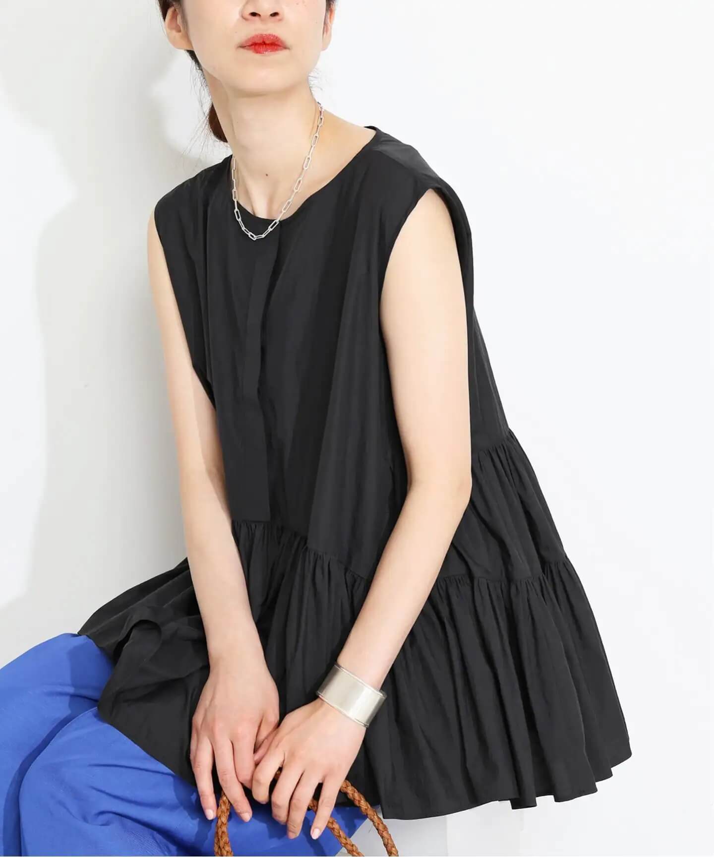ノースリーブトップスは、ふわふわと揺れる