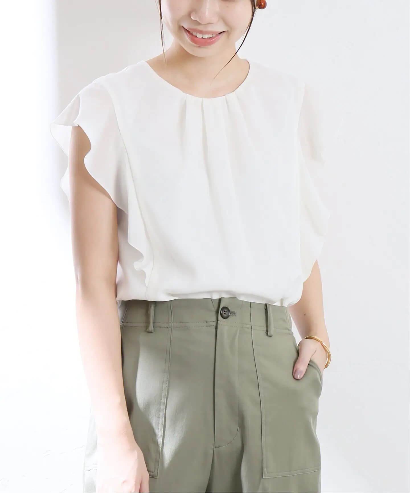 優しげフレア袖ブラウス肩周りにフリルをあしらったブラウスは