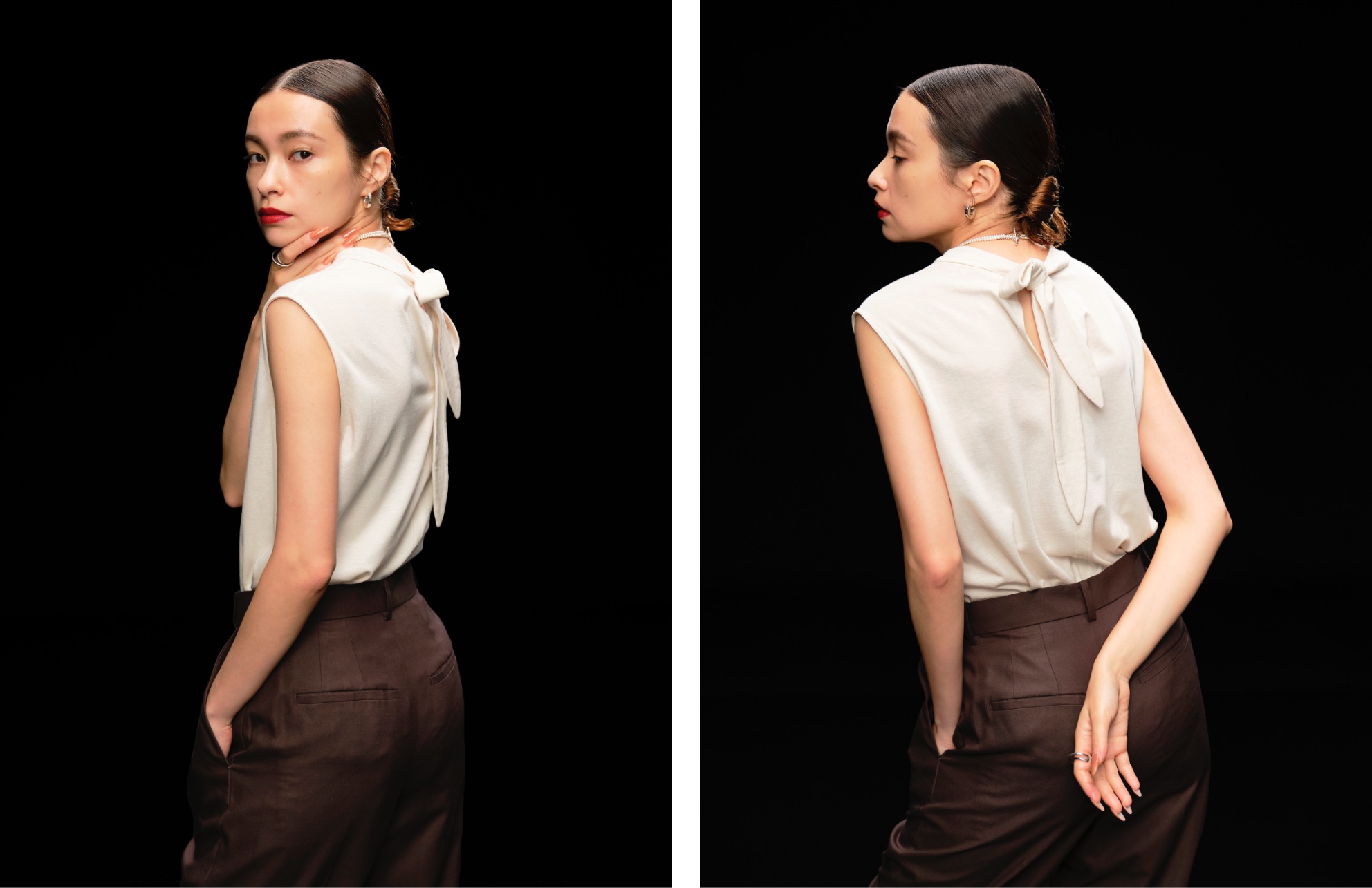 L’été chic気分を夏へとアップデートする装いはいつもより自由でシックな新しいバランス。