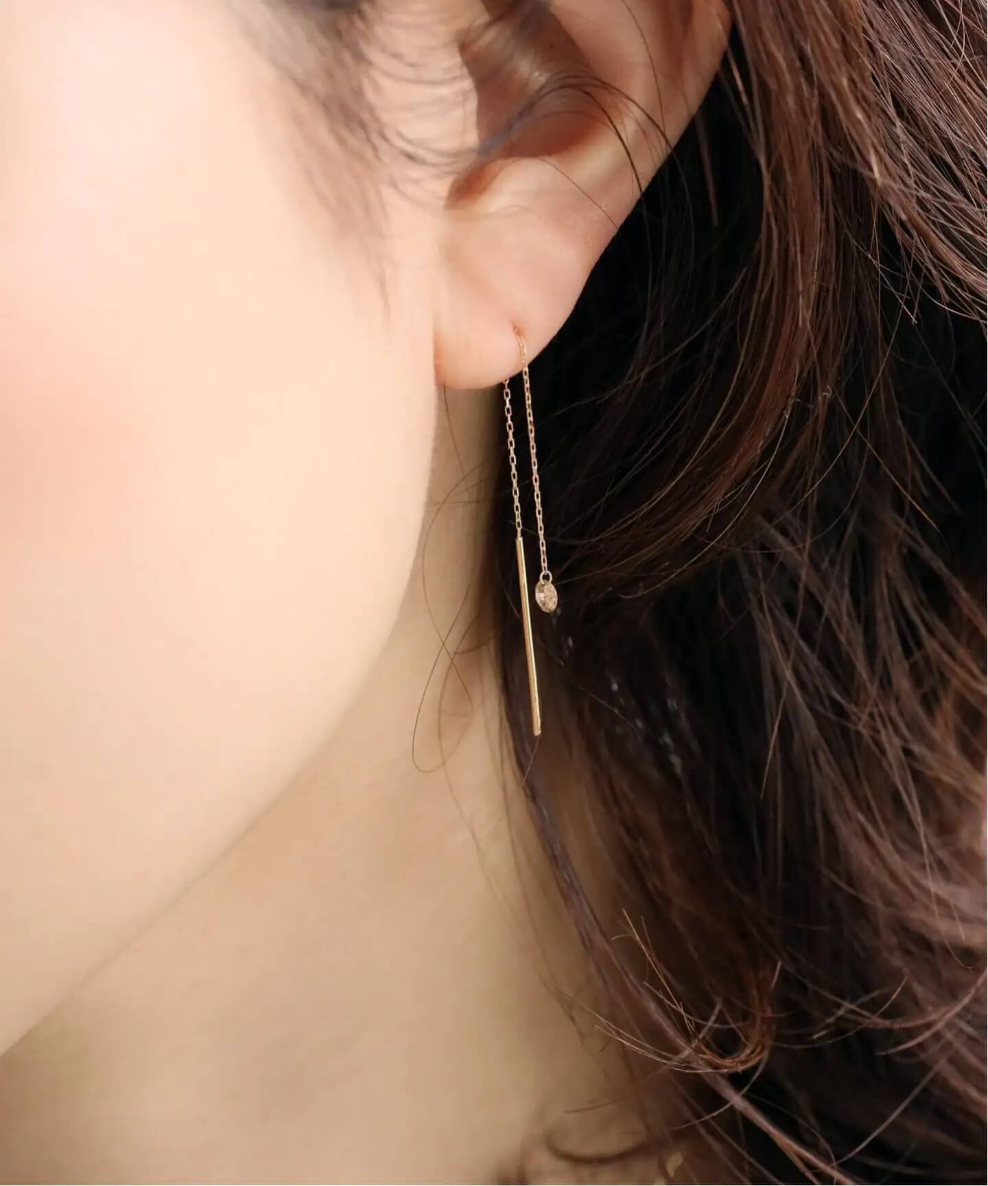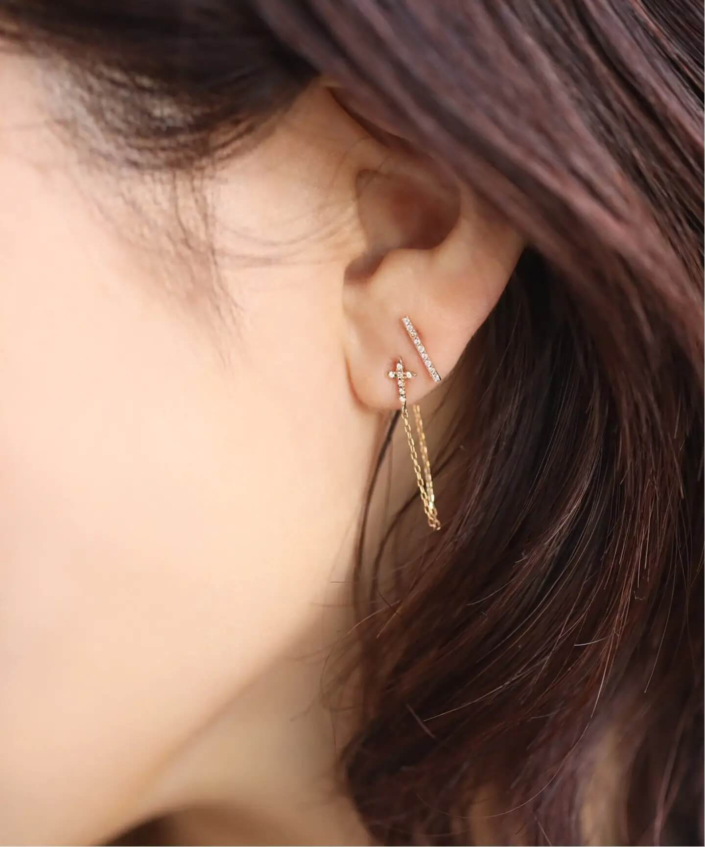 ダイヤモンドがキラリと揺れるチェーンピアス。