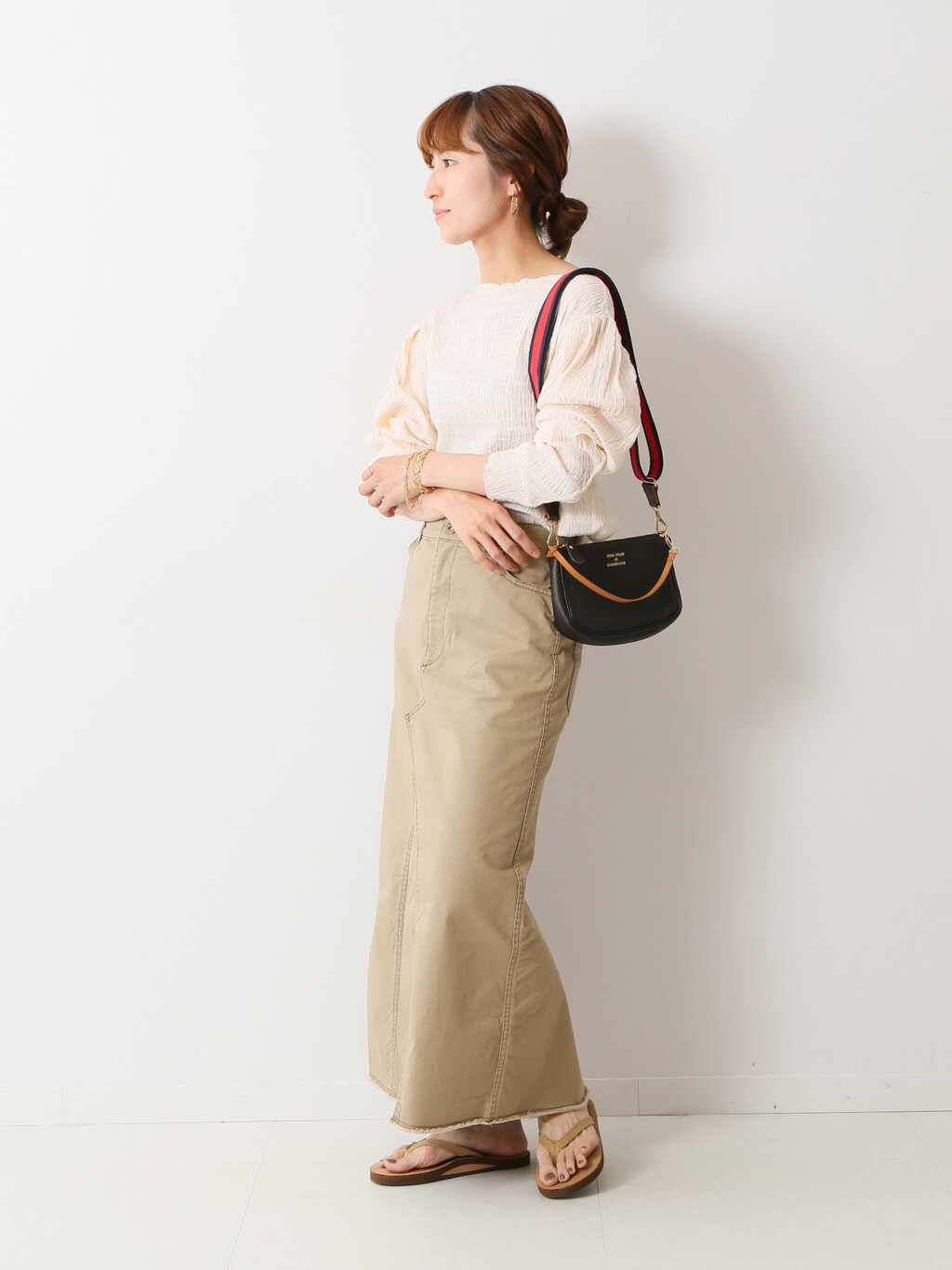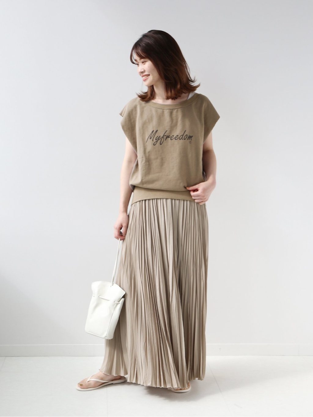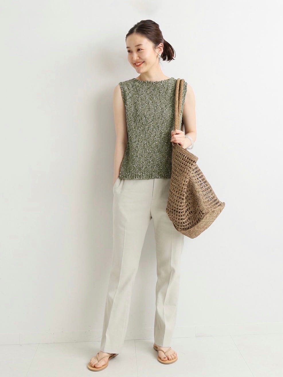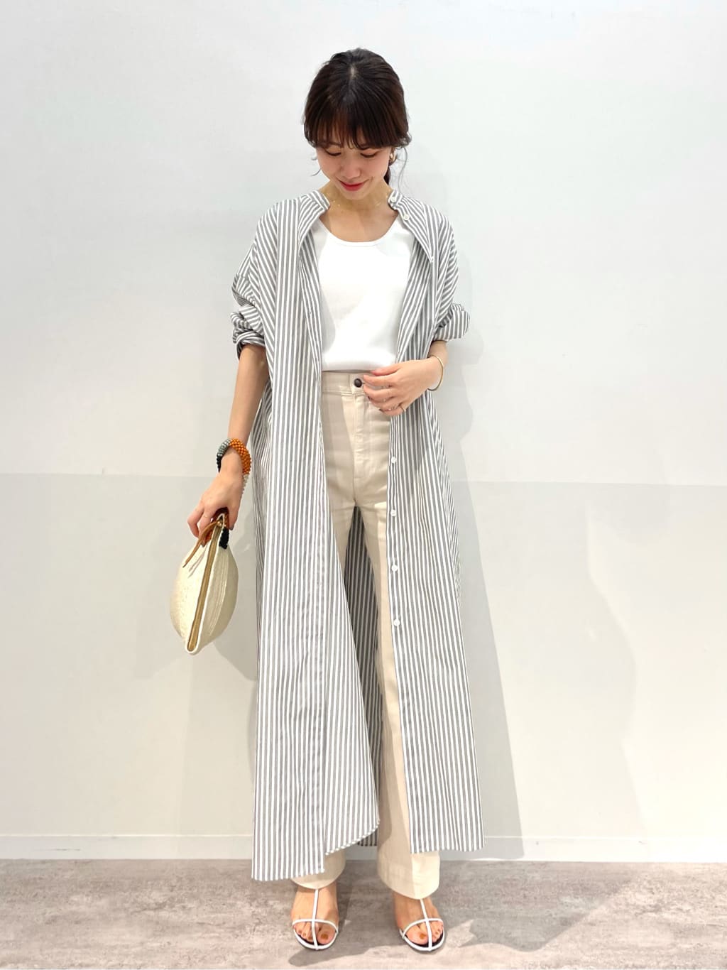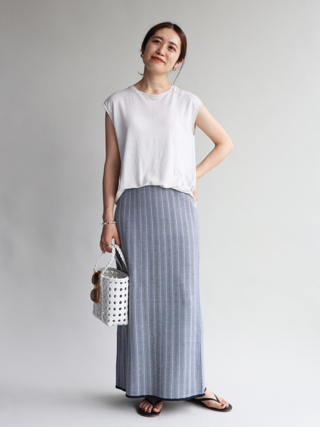 クリーンにまとうキレイめリゾートコーデスッキリしたシルエットのワンツーコーデには、