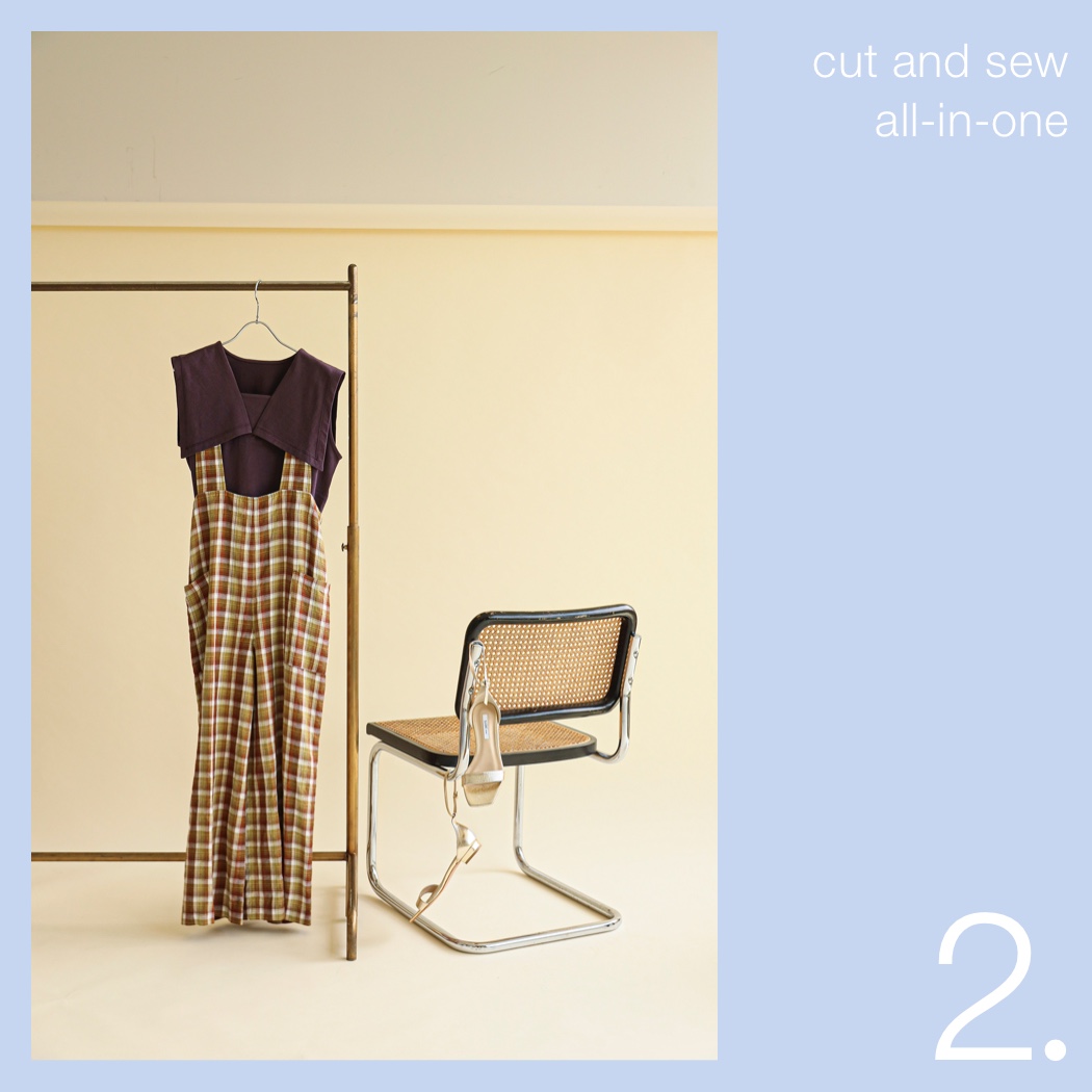 セーラーカラーのカットソーとオールインワンをチョイス。