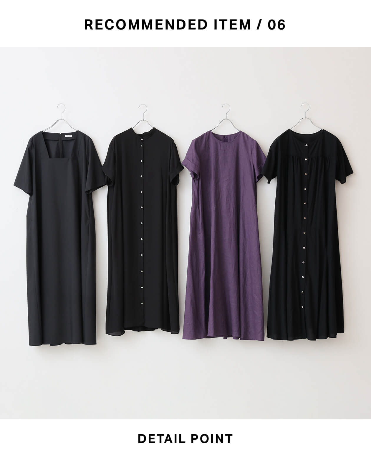 - 1枚で楽にキマるハーフスリーブのワンピースは、Aラインやセミフレアをピックアップ。ダークカラーでも軽さの出る、リネンやシフォン素材が夏にぴったり。前開きタイプなら羽織りでも着られて着回し力抜群!ウィンターさんがパープルを選ぶなら青さのあるものを。シックな色味で上品に着こなせそう。