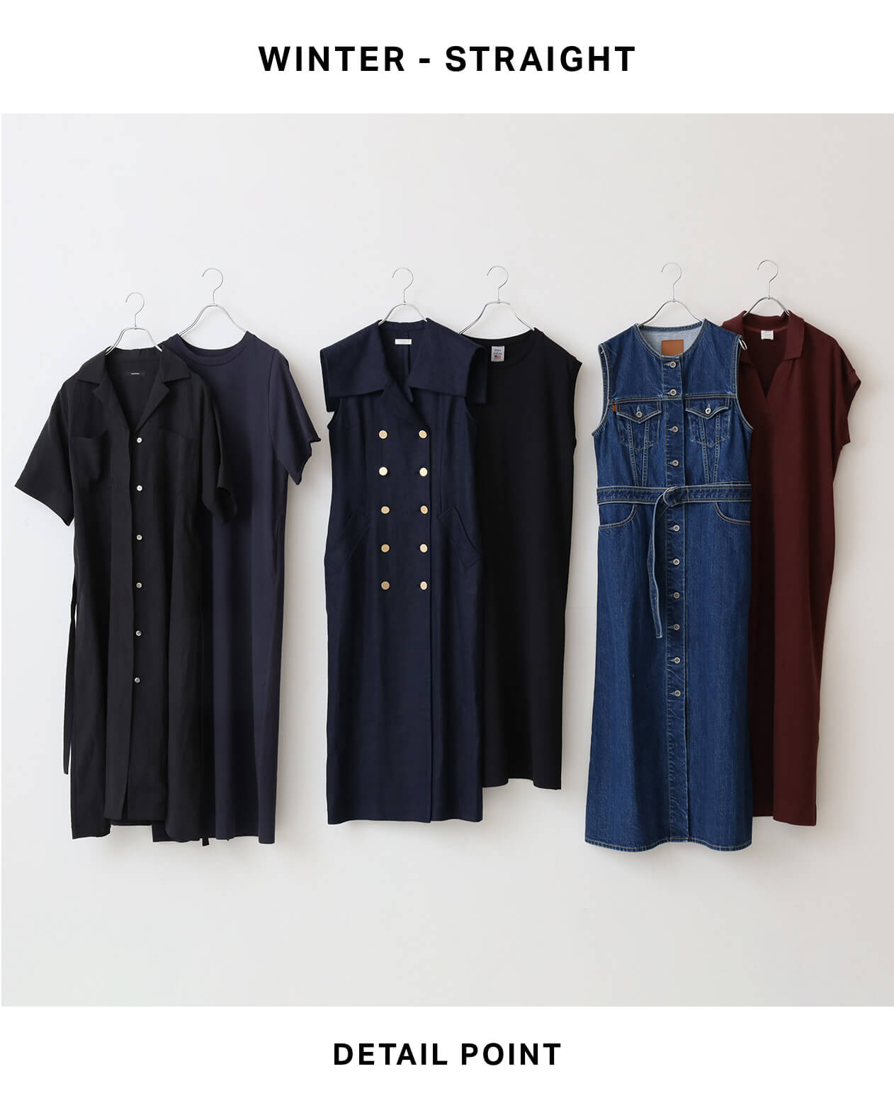 かっちりとしたシャツワンピースや、カジュアルな夏コーデに欠かせないTシャツワンピース。ストレートタイプは半袖かノースリーブ×全体的にすとんとしたIラインシルエットがベストバランスです。地厚なデニムも体のラインを拾わなくてグッド。カジュアル派ストレートさんにぜひ取り入れてほしい1着です。大きめのセーラーカラーがトレンドムードたっぷりなリネンワンピースで旬度を高めて。 - JOURNAL STANDARD2WAYオープンカラーワンピース¥15,400(税込)
