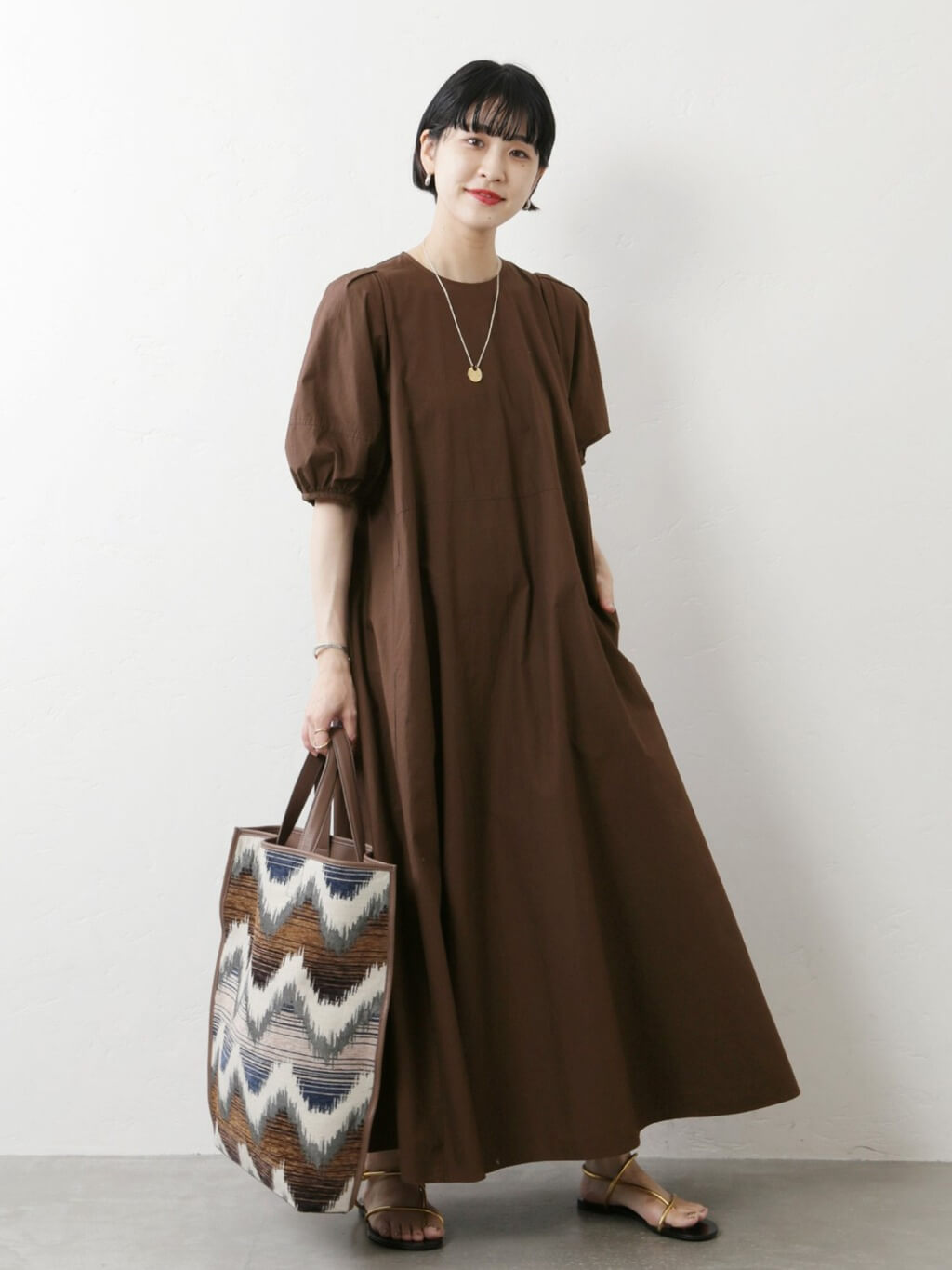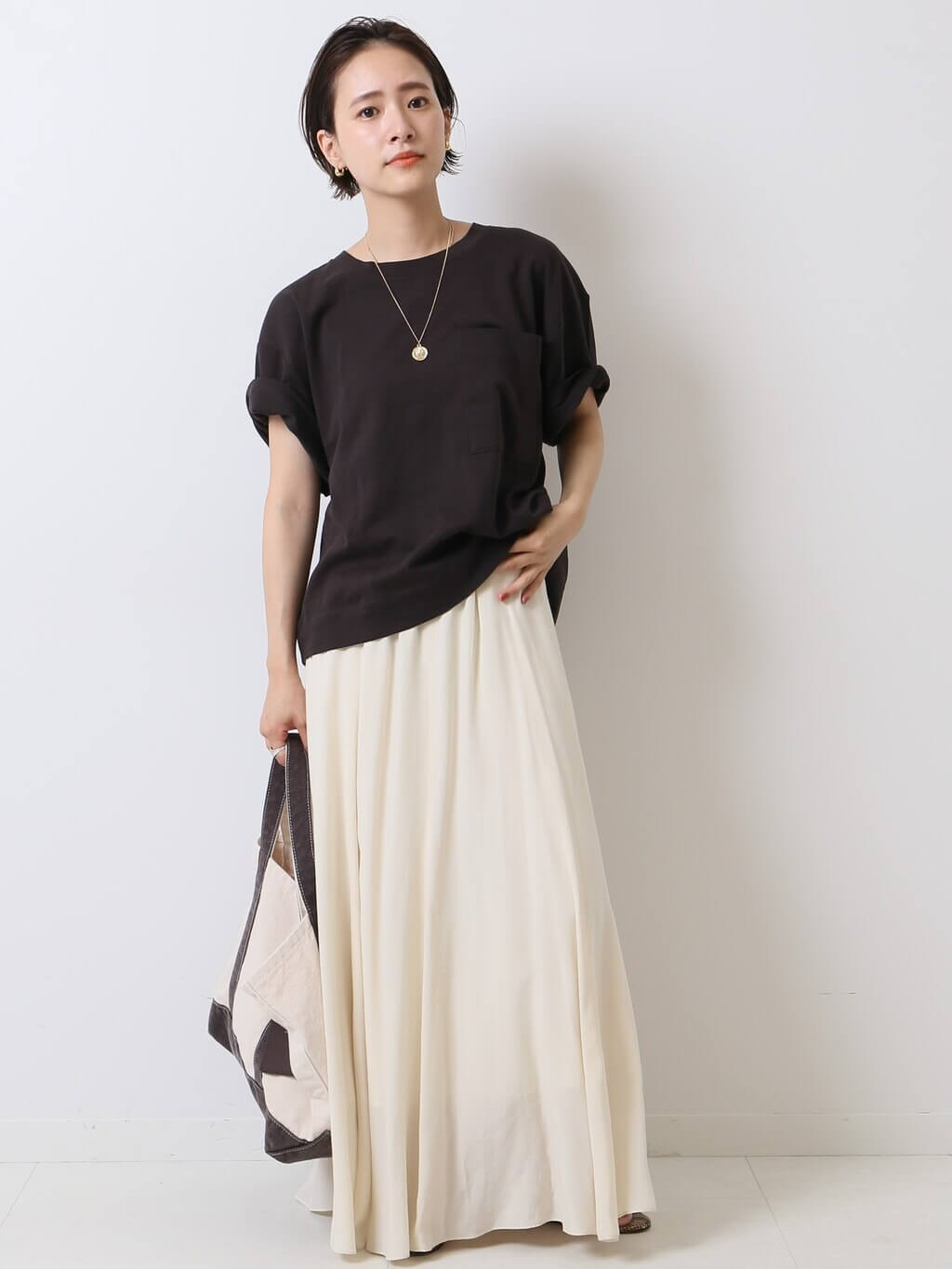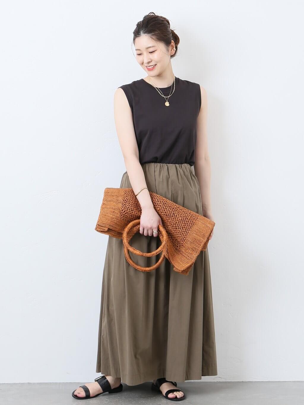 女っぽいときめきを忘れないリラクシーコーデアースカラーでまとめたスカートコーデには