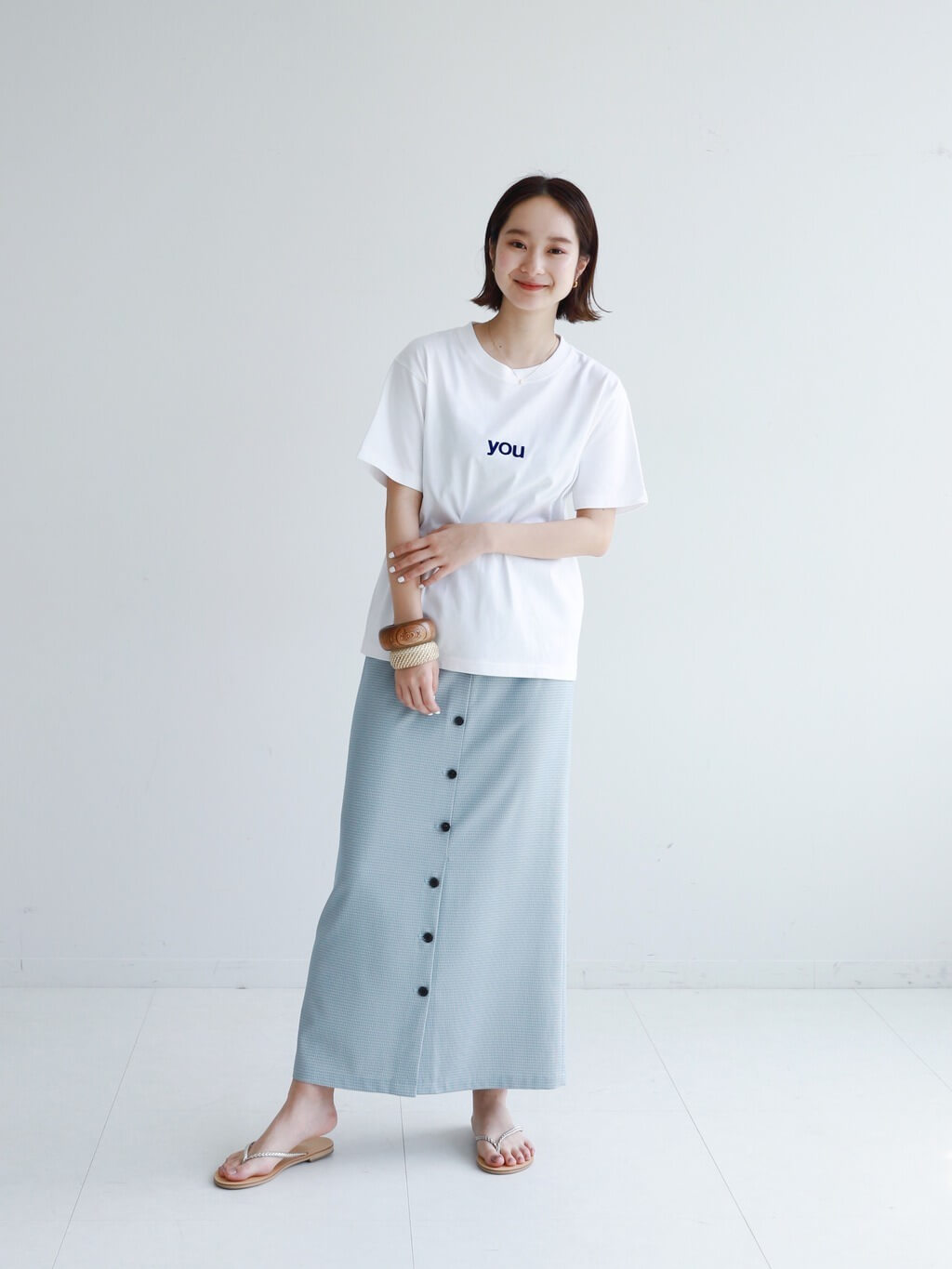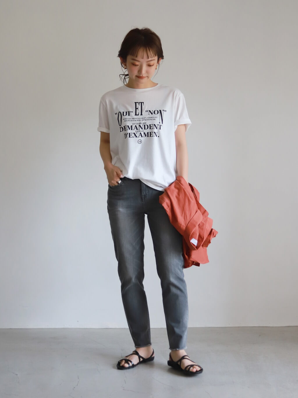 ヘルシーにこなれたサマーカジュアル大人っぽいロゴTをさらりと着こなすスタイルが◎