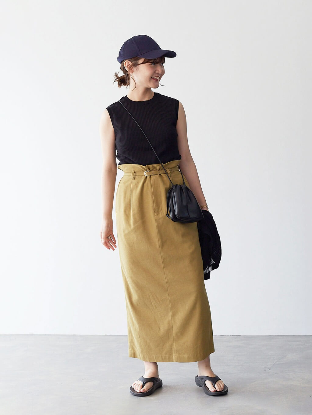 引き立てた縦長シルエットコーデには、キャップをプラス。