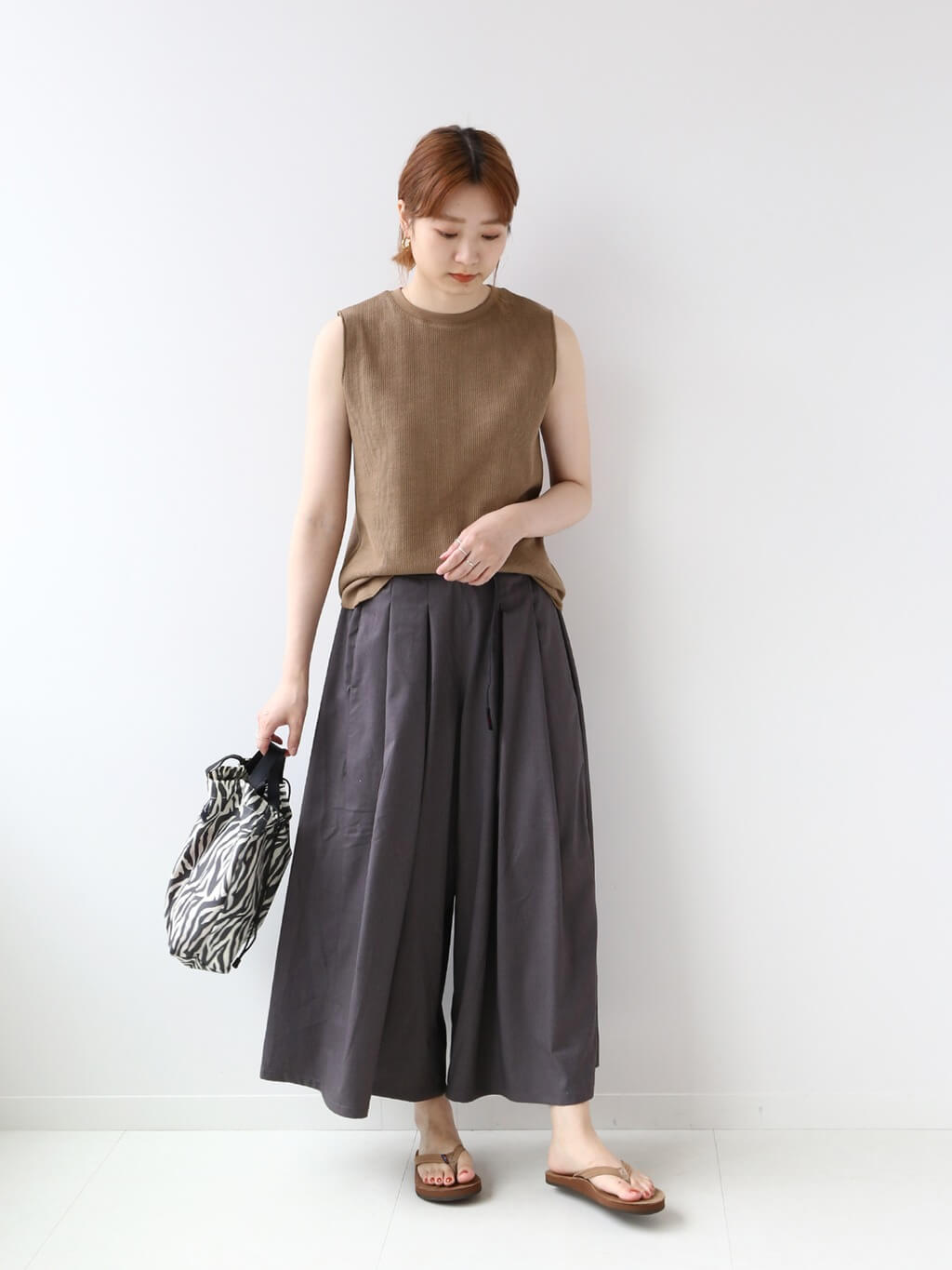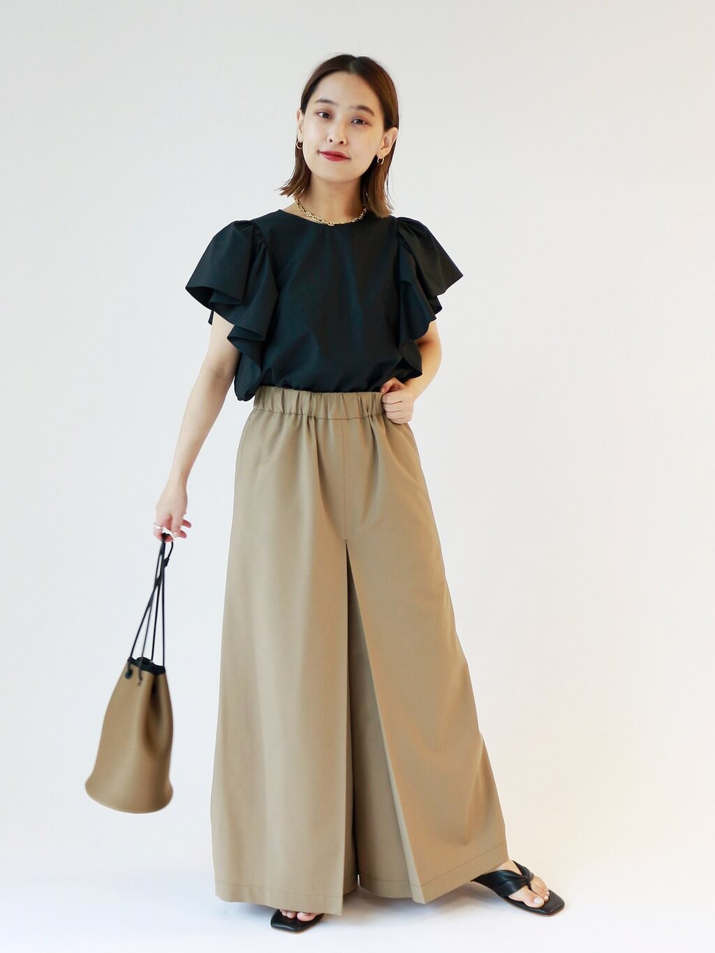 モードでフェミニンな大人のサマーコーデスカート風のモードなキュロットや