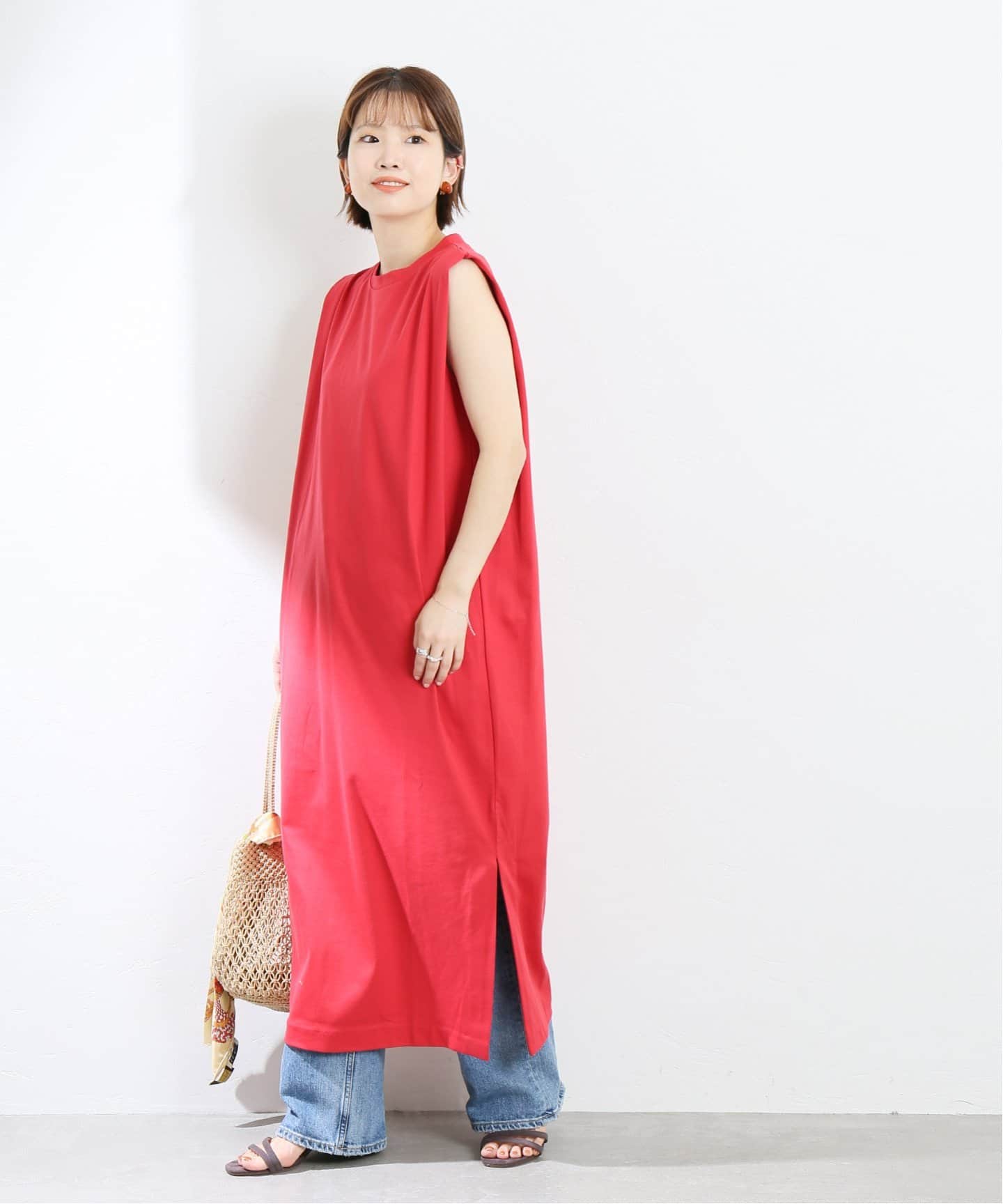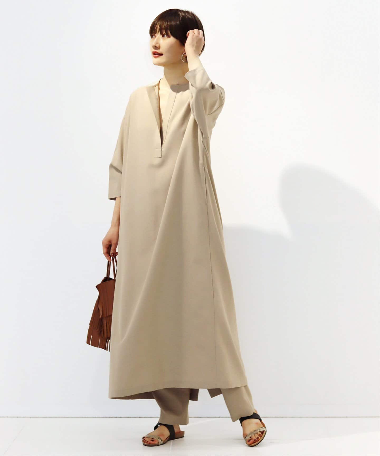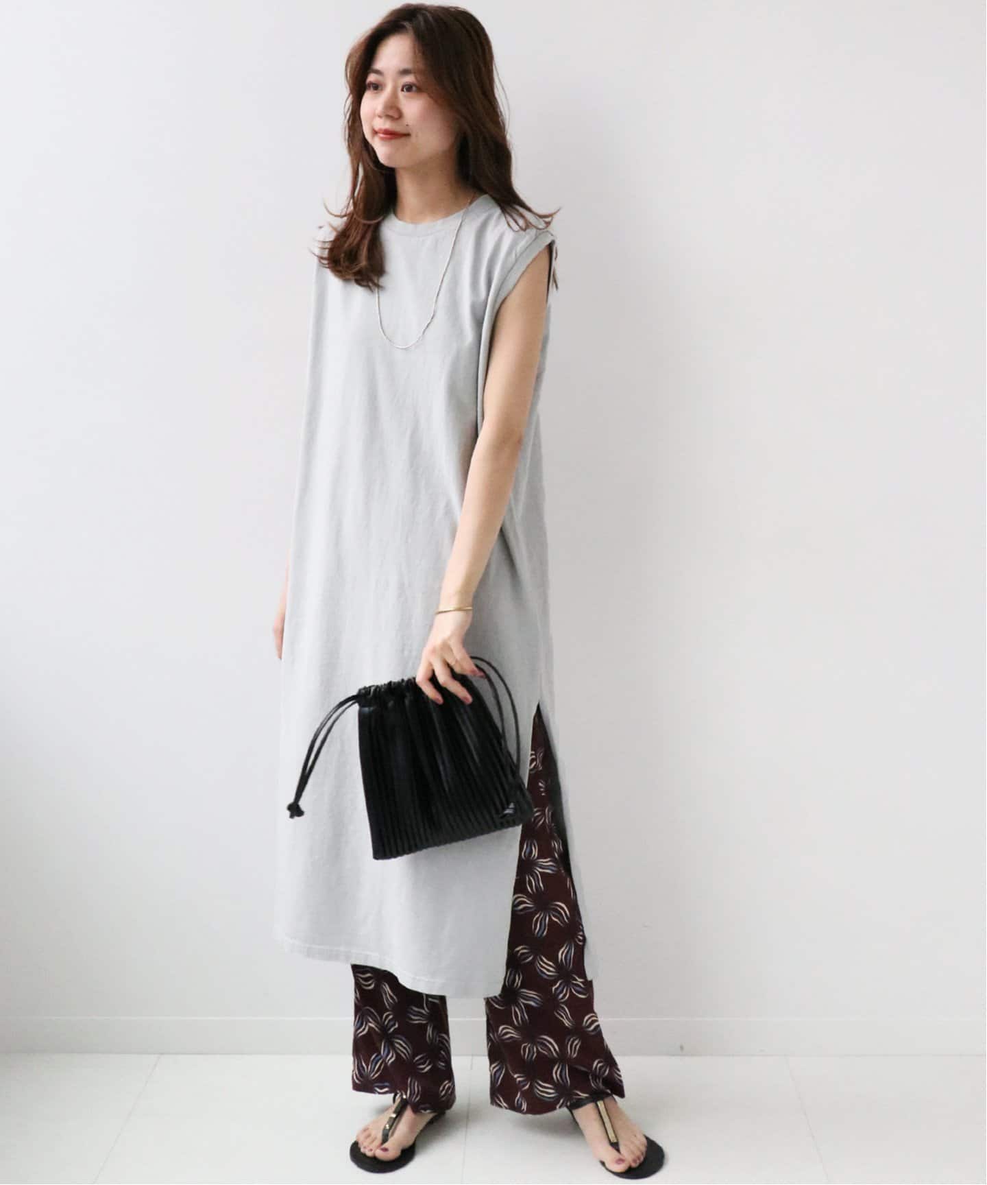 縦長カットソーワンピースタック袖やサイドスリットなど、旬な縦長シルエットを