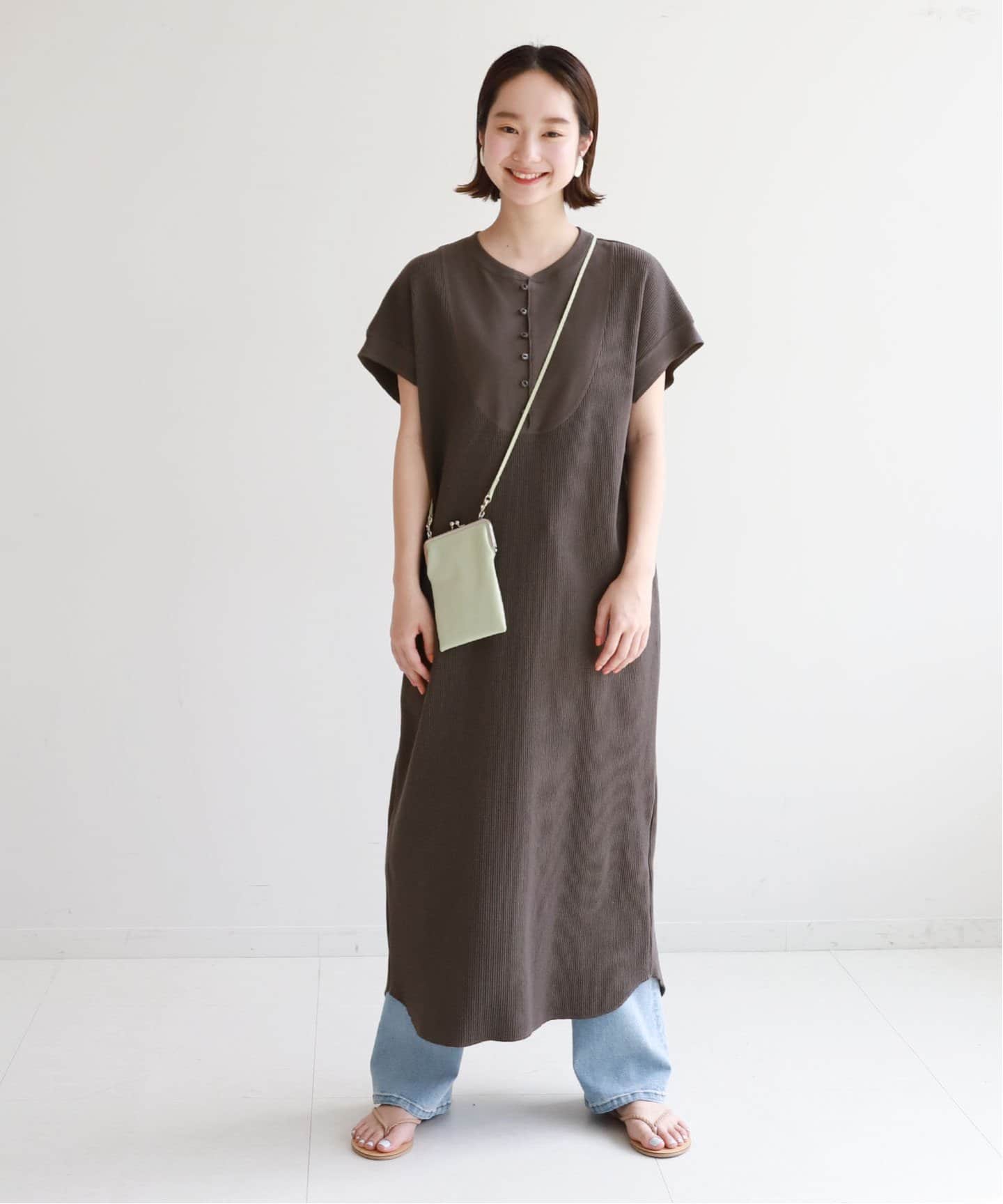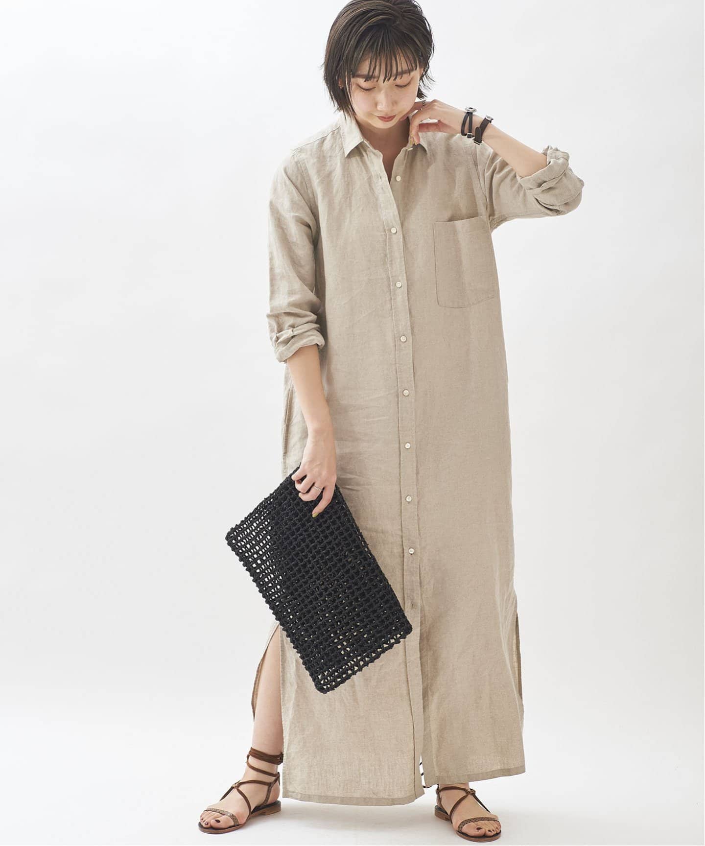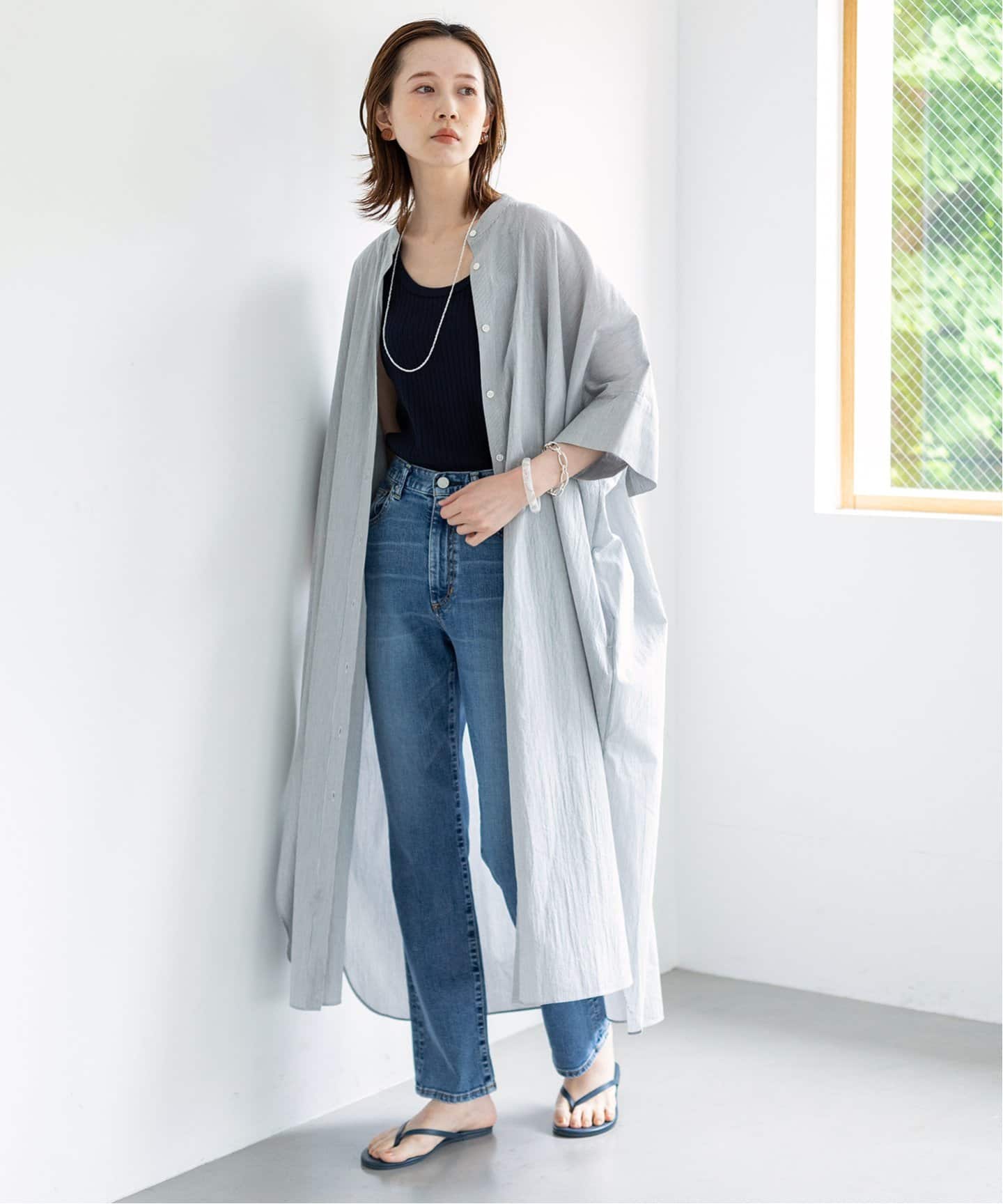 羽織りワンピースライトアウター代わりにもなる前開き・シャツタイプ。