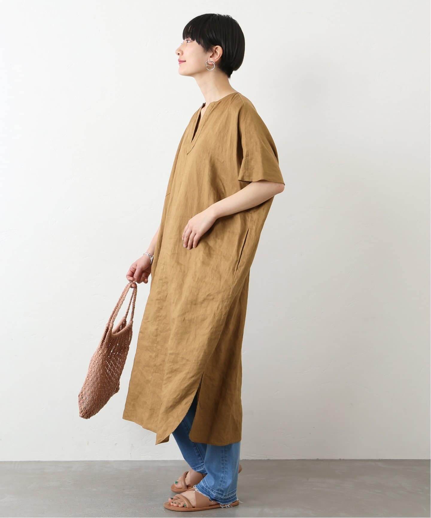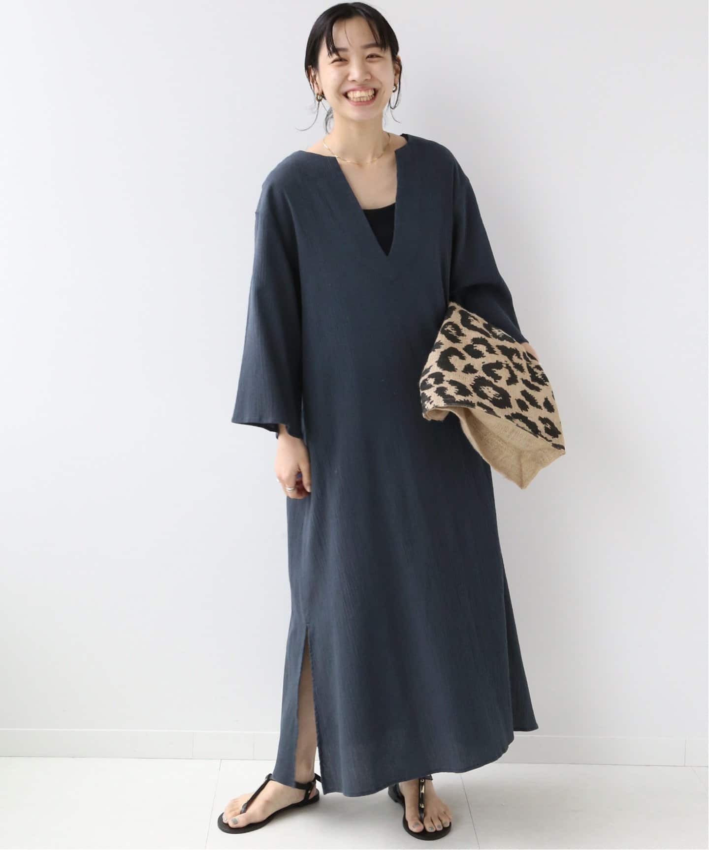 夏スタイルを堪能できるカフタンワンピース。