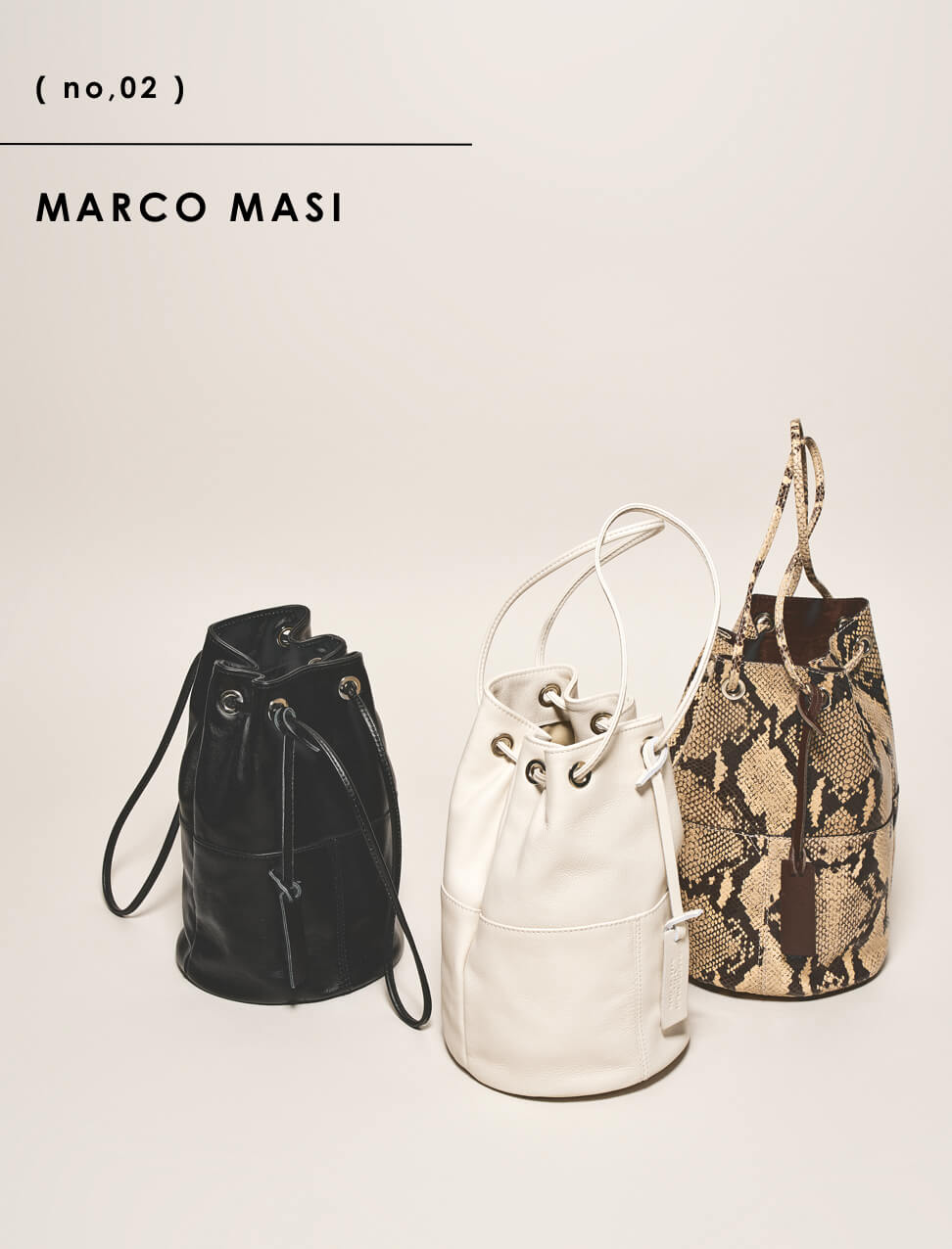FRAMeWORKで人気のイタリアのバッグブランドMARCOMASIの巾着BAGに新色のシロとクロが加わりました。巾着型でありながらしっかり入るサイズ感はトレンド感をおさえつつ実用性も兼ね備えた優秀アイテムです。