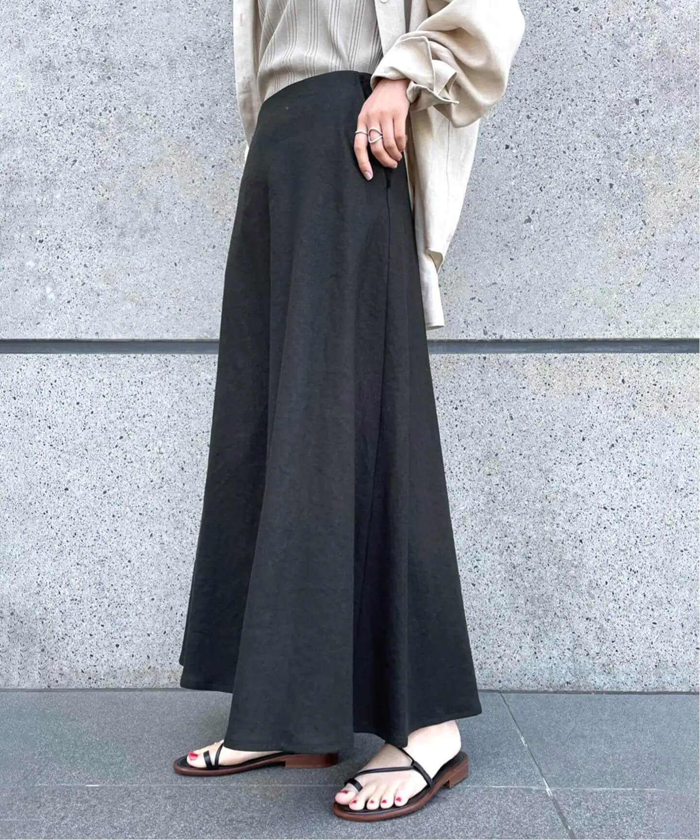 今時なニュアンスがたっぷりの黒スカート。フレアでも