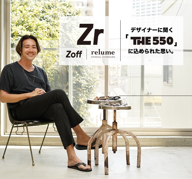 いえ、その時はTHE 550というテーマは決めており、デザインや価格はそのあとに《Zoff》さんとrelume側と相談しながら決めていきました。価格帯については当時、もう少し高い値段設定にするという話もあったんです。《Zoff》さんはスリープライスで手に取りやすい価格が魅力ですが、しっかりとした背景を持っているので2万~3万の高価格でハイグレードのものも作れると言われて。ただ、あまり高い値段にしてしまうと両社のお客様に寄り添った価格帯という共通点に反してしまうと考え、今回は手に取りやすい価格に設定しています。それでもやはりクオリティが高いものが出来上がってきたので、《Zoff》さんのもの作りの背景には脱帽ですね。