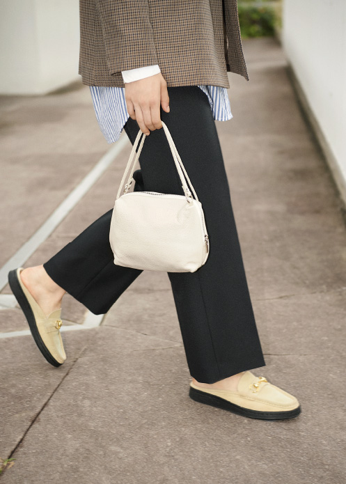 ワンマイルより少し、遠くまで。 こんな気持ちの変化をスタイリングにも映し出したい。 これまでのリラクシングな着こなしを、アクセサリーとシューズで新鮮にアップデート。 お気に入りと一緒に、新たな季節に想いを巡らせる。