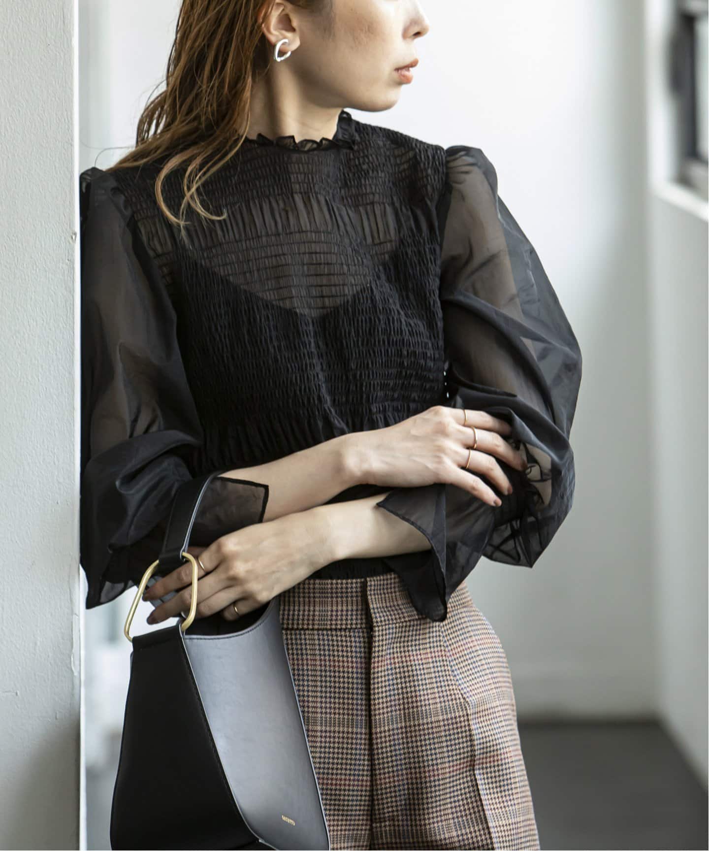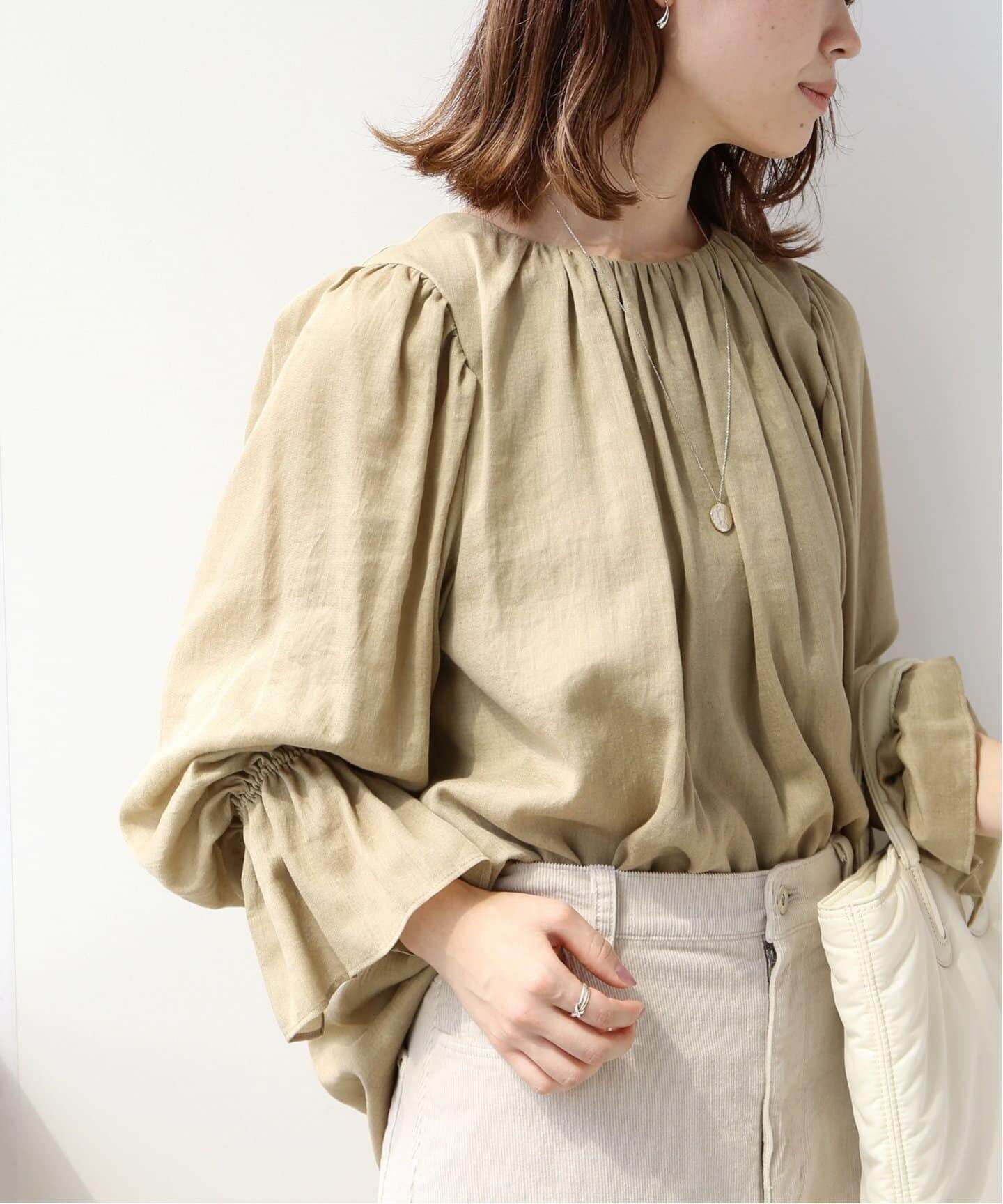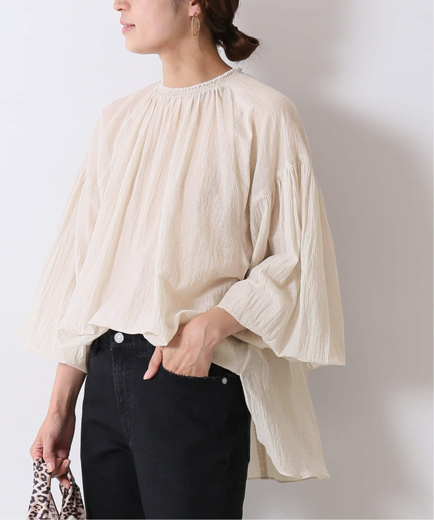表情豊かなギャザー・シャーリングブラウス。