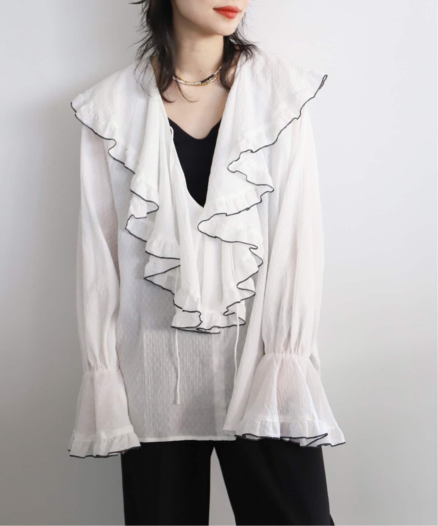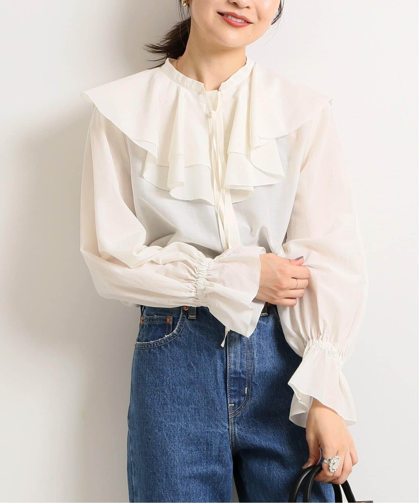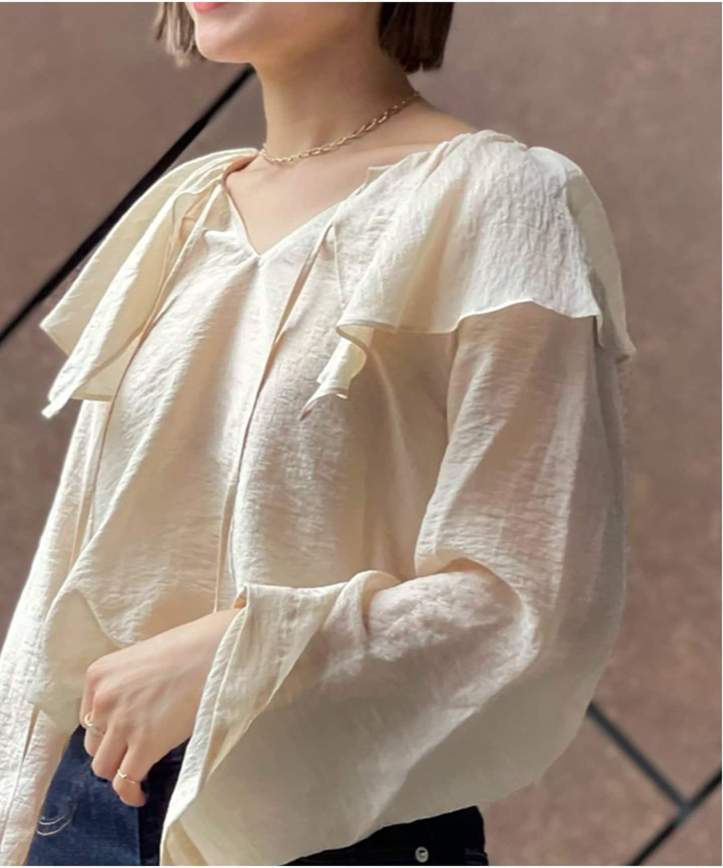ラッフルカラーブラウスの