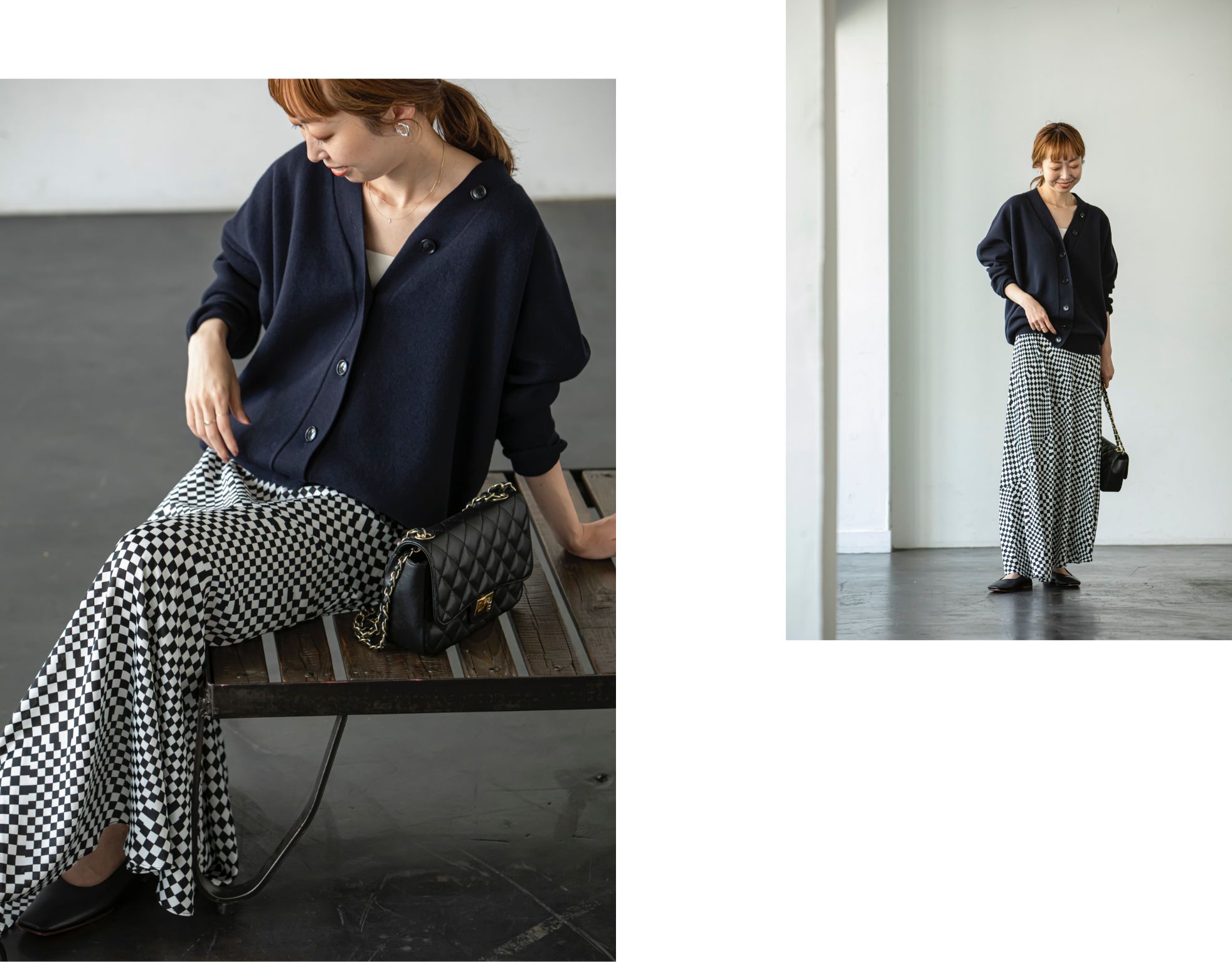 ・エフォートレスなニット素材も、ひかえめな艶や落ち感のあるシルエットが洗練ムードたっぷり