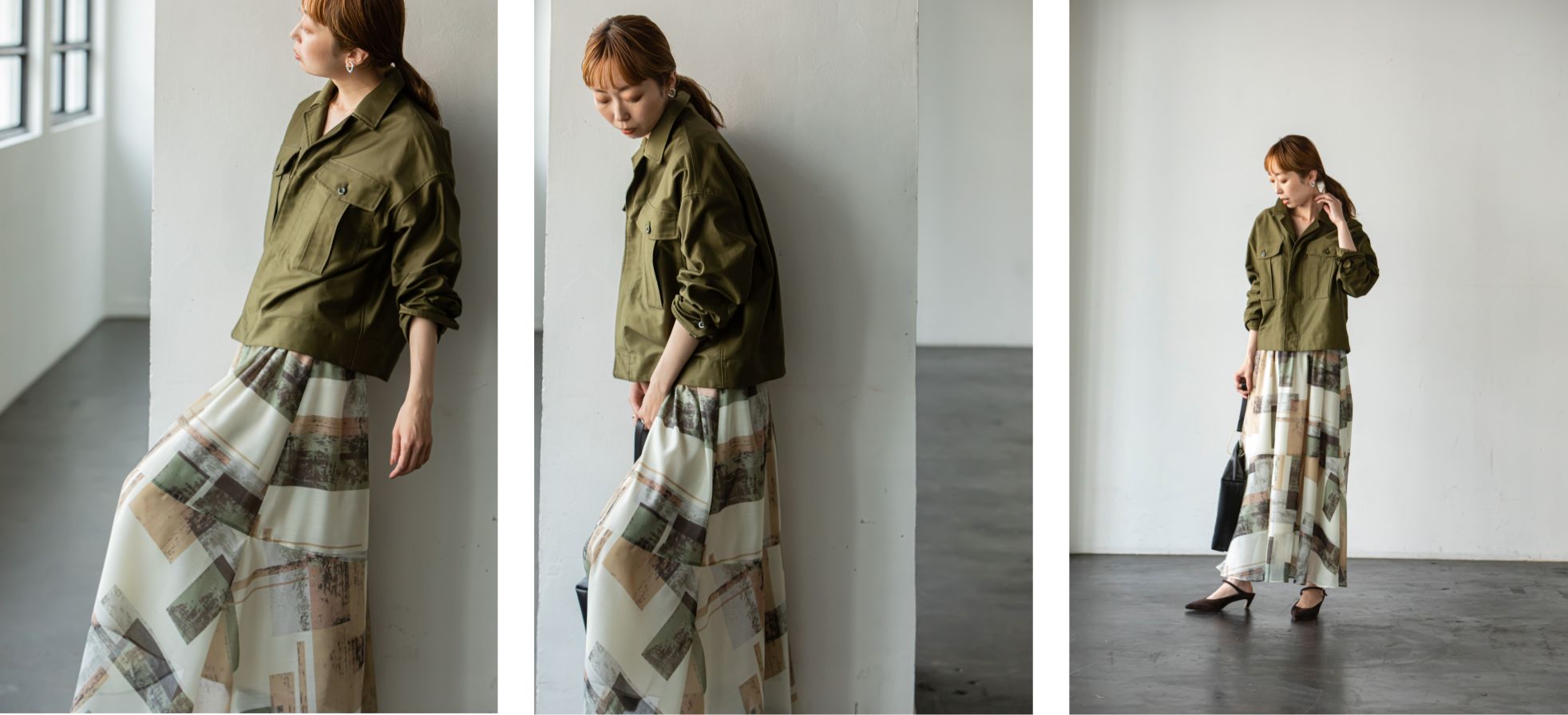 ・襟を抜いたり腕をロールアップさせたりすることで、デコルテや手首が見えて女性らしさがグッとアップ- NOBLEミリタリーショートブルゾン◆¥26,400(税込)
