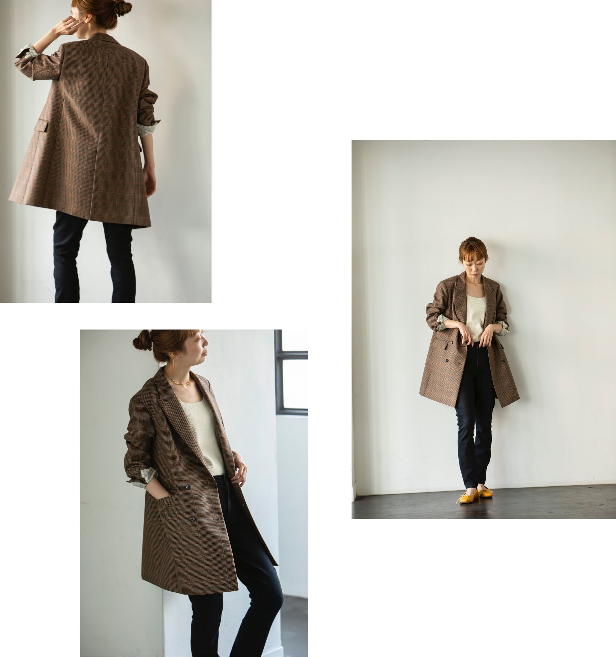 ・チェックとネイビーの2色展開。お好みでお選びいただけます- NOBLE《追加》チェックピークドロングジャケット◆¥38,500(税込)