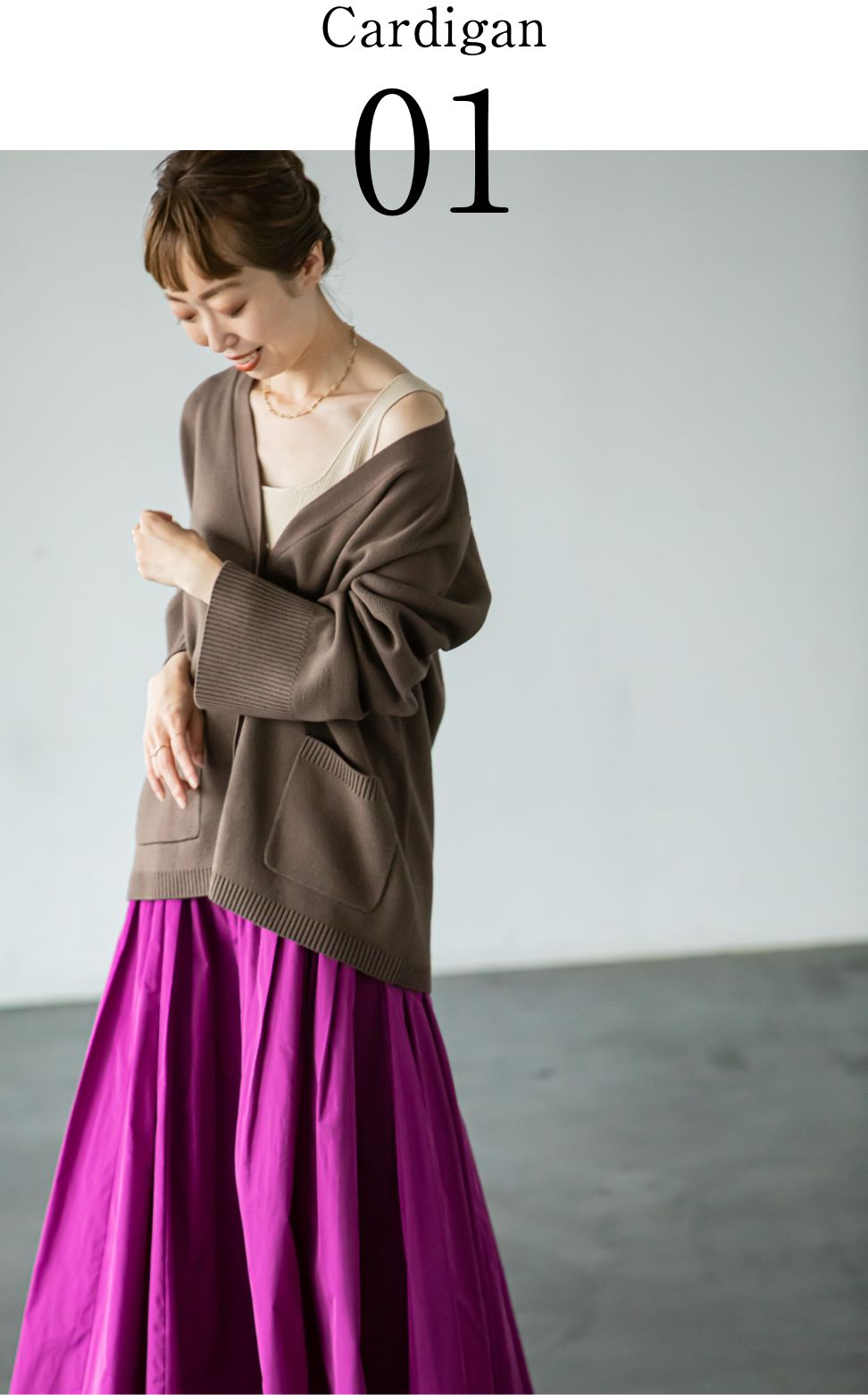 ・ゆったり着られるデザインと、肌から離れるドライタッチな素材で季節の変わり目一番に着用可能- NOBLEミラノリブ ジャケット カーディガン◆¥18,700(税込)