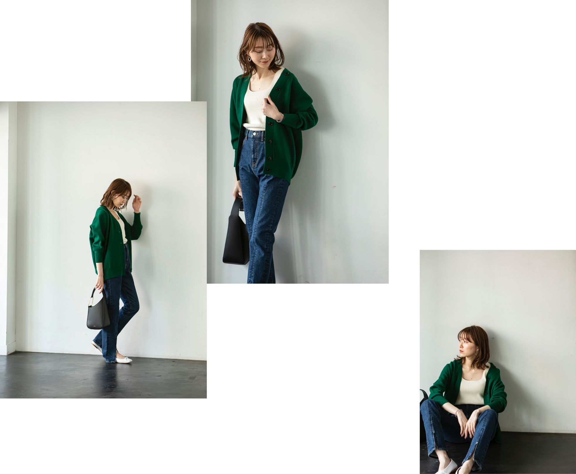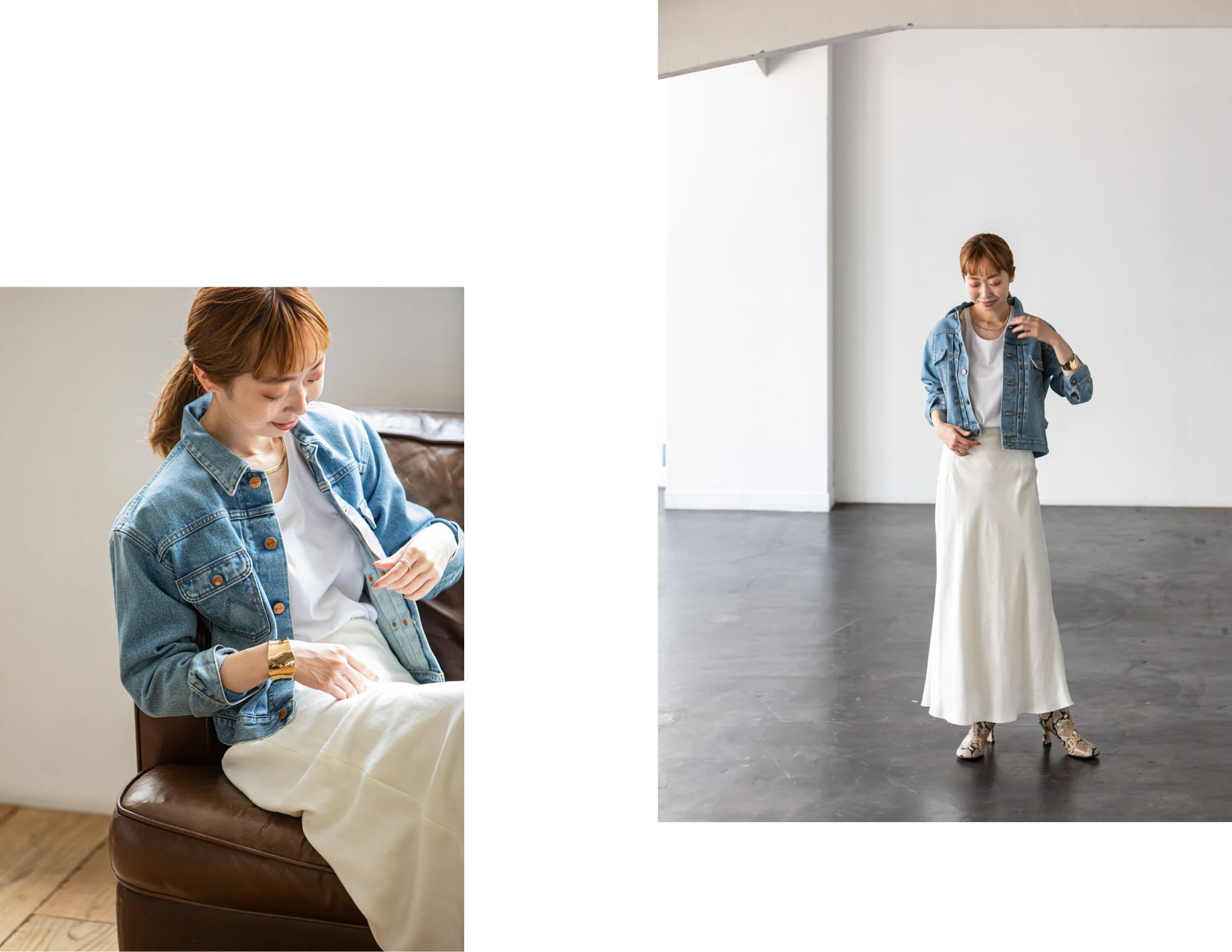 ・デニムでカジュアルに、ブラウスやスカートと合わせてレディライクに、とスタイリングも自在