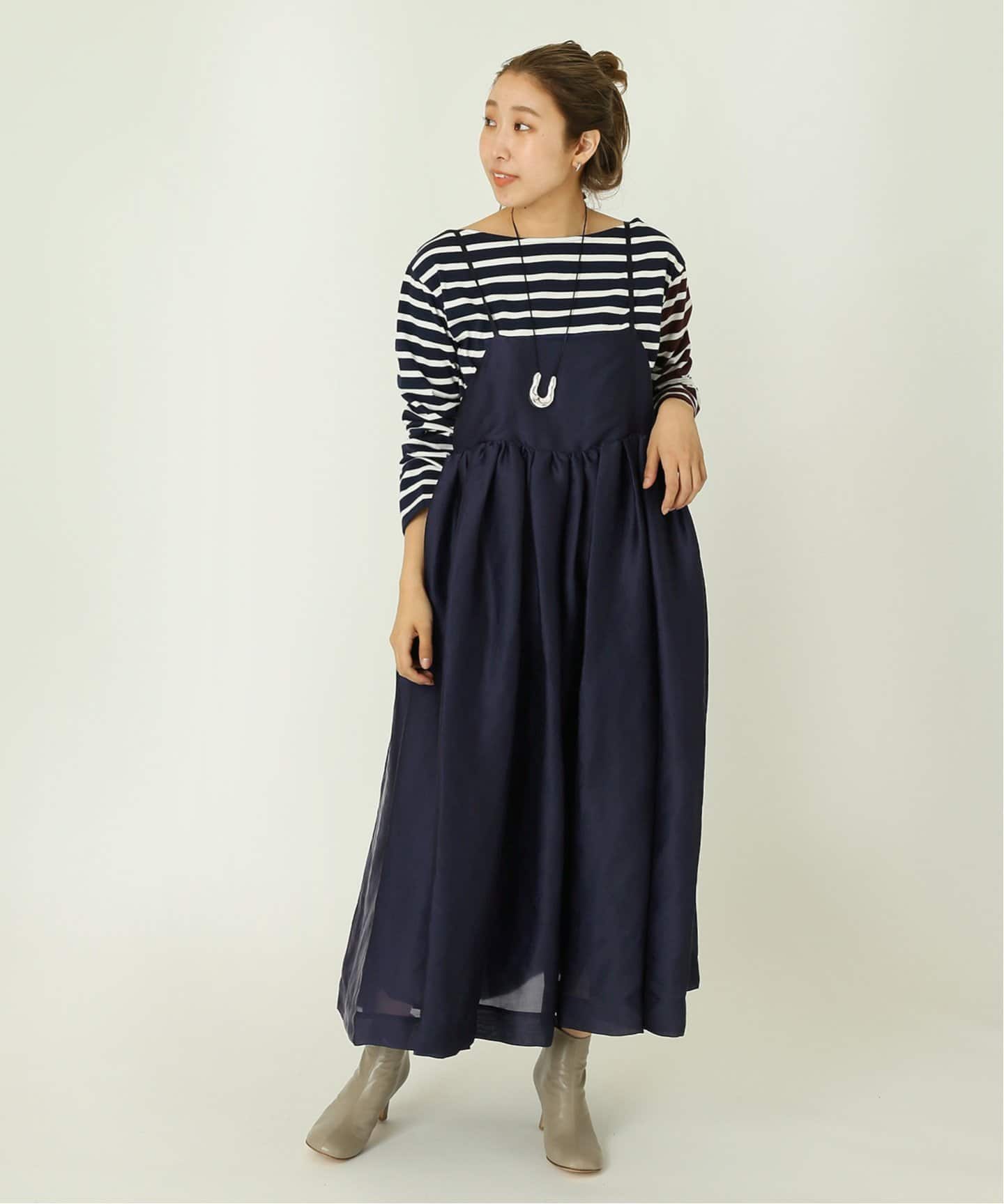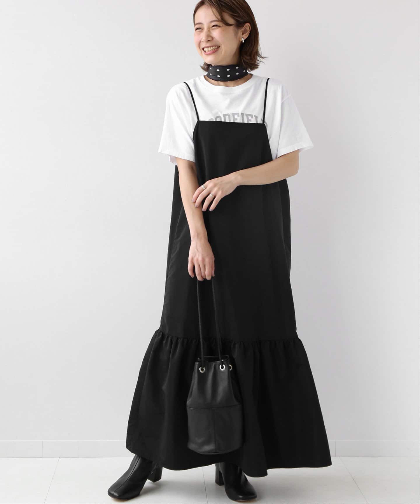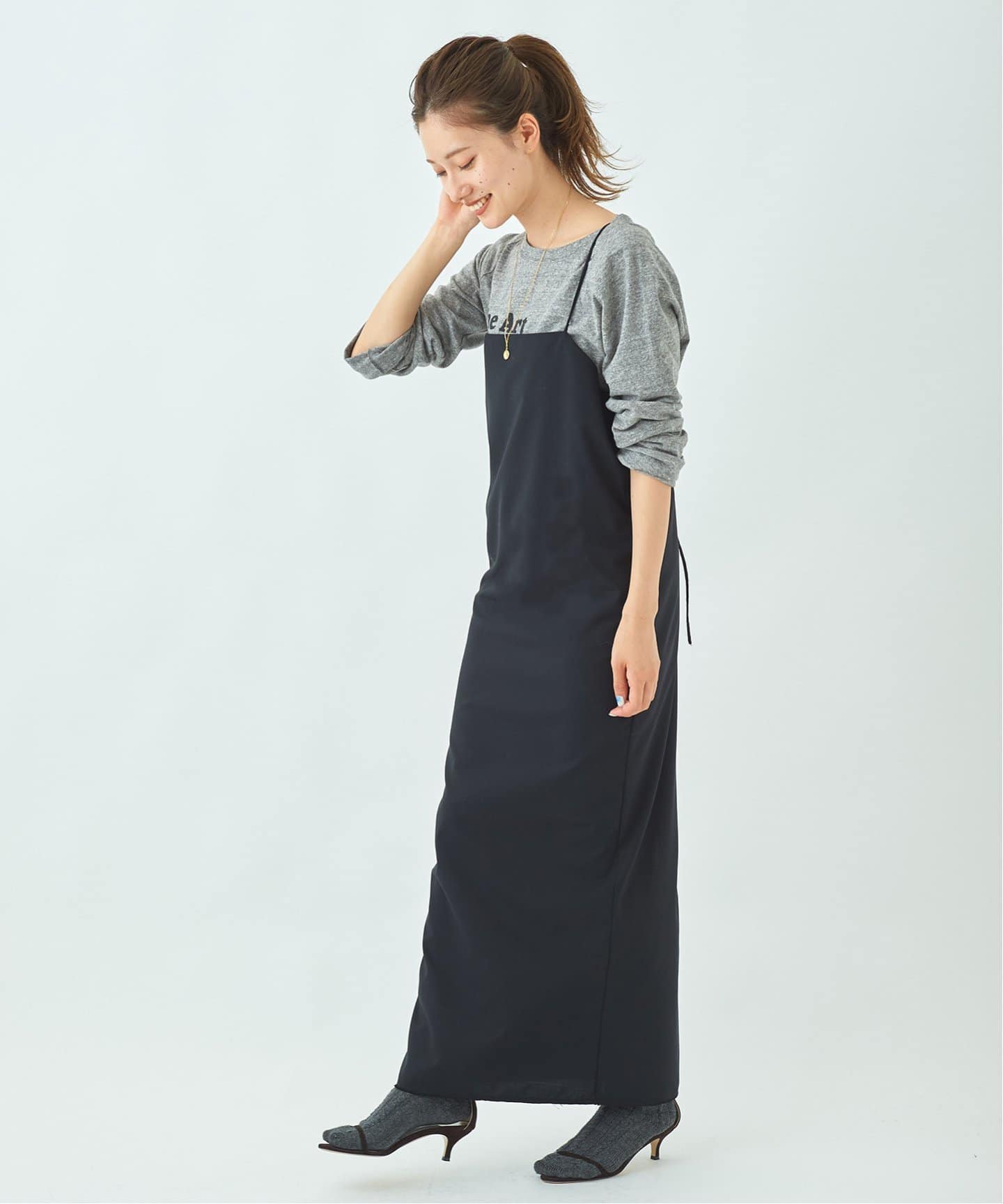 ギャザーをたっぷり寄せたフェミニンなキャミワンピは、