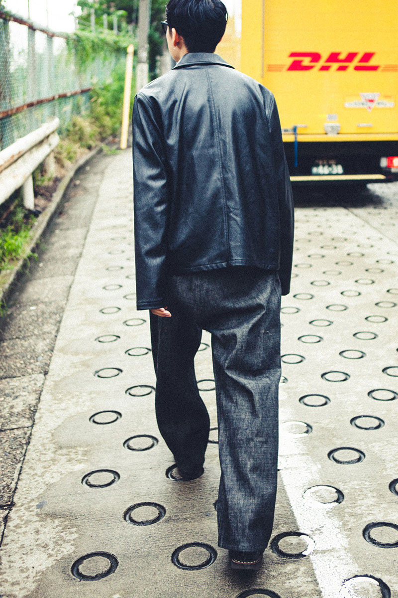 ヴィンテージや現行のデニム含めて、おおよそ40〜50本ぐらい持っていて、Leeももちろん持っています。Leeのプロダクトは、普段デニムを穿かない人も試しやすいものが多いイメージです。あと、昔からよく言われるのは、時代が変わってもずっとトップスはジャストサイズで、パンツは太めをチョイスして、Aラインを作ることですね。そういった意味でも、このコラボデニムの様な太さはいつも通りの感じで、違和感なく穿けますね。