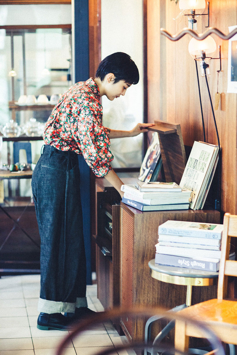 元々デニムってワークウェアの発祥だから、店頭に立つ時は禁止にしているお店もあるんです。でも、わたしはそういう所で線引きする必要はないと思っているので、穿きたいですね。でも、あまりウォッシュされたデニムだとカジュアルになり過ぎちゃうので、この黒のデニムの色はキチッとして見えますし、働いている人のファッションとしても馴染むと思います。