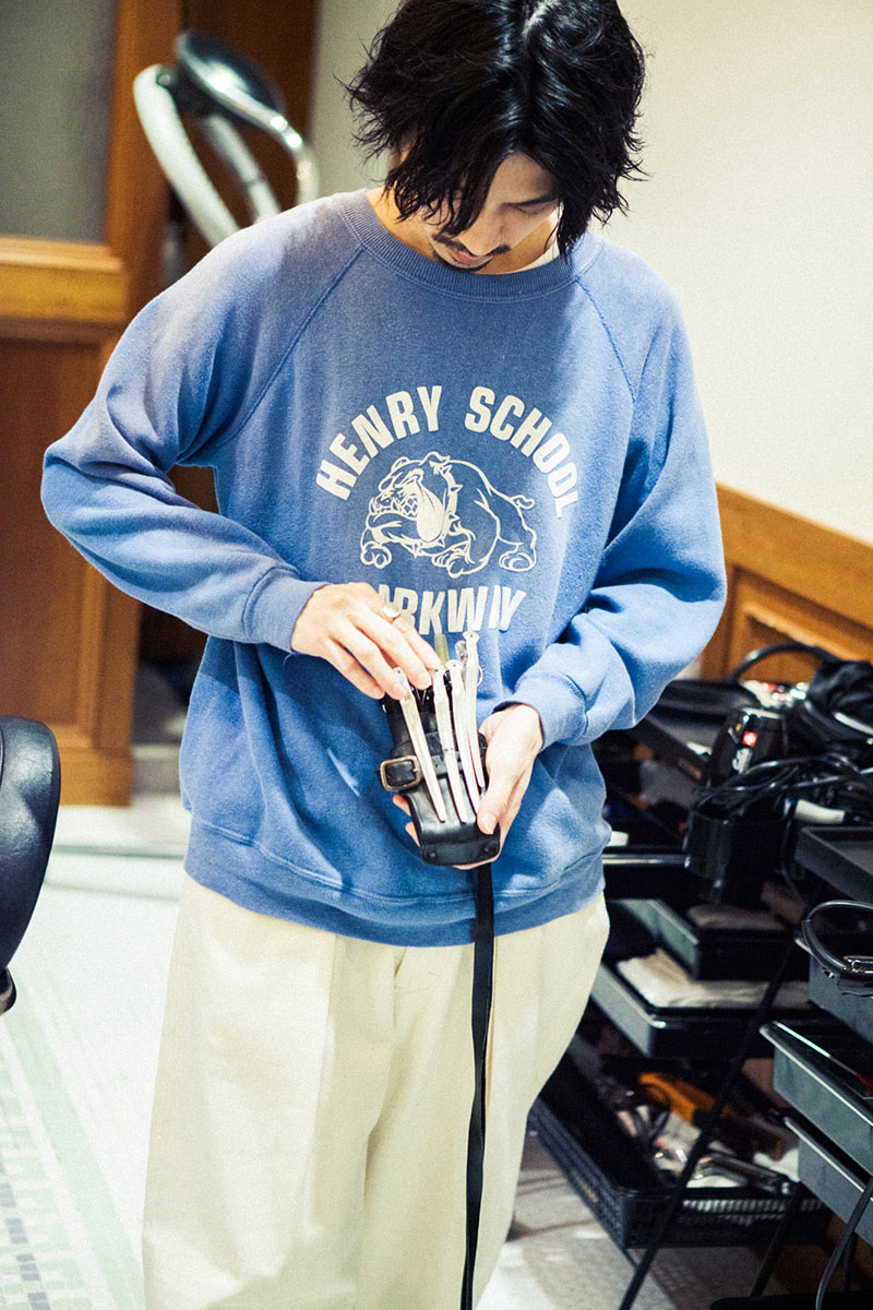 普段からLeeのデニムはよく穿きます。ぼく自身ポール・ウェラーが超好きなんですよ。彼がLeeのオフホワイトのデニムを穿いているのを真似て、自分も愛用していました。ジャケットとかも好きで持っています。あとは父親がLeeの服をすごい持っていた影響もありますね。Leeは様々なバックボーンがあって、その独特の空気感が他ブランドとは違う感じがします。