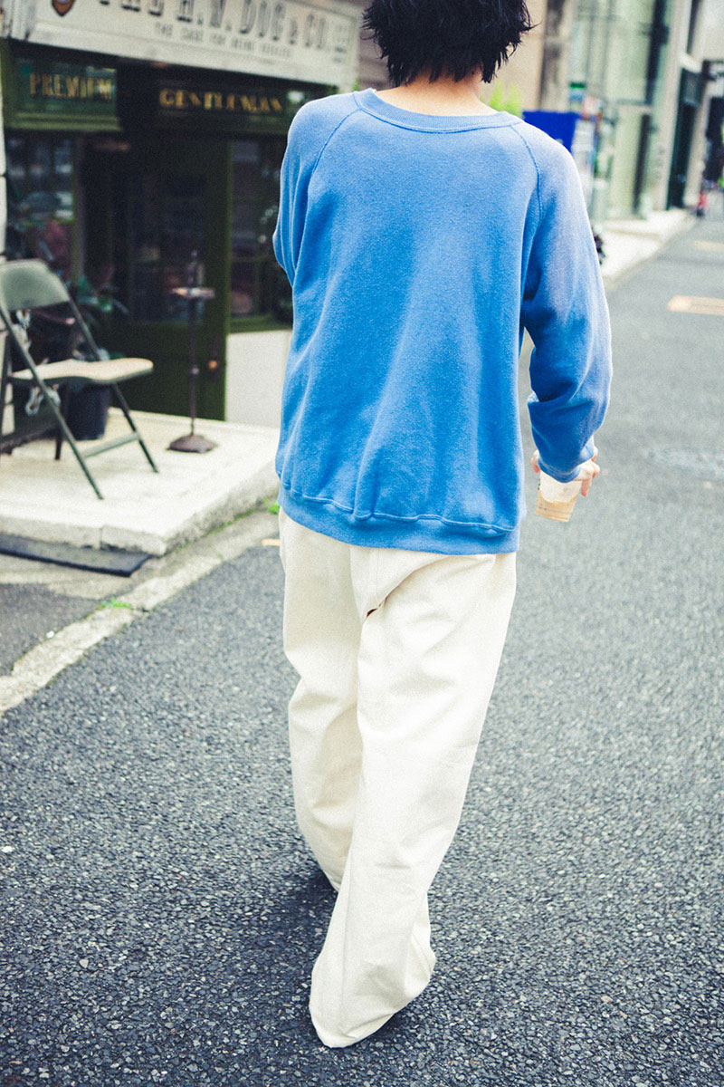ウエストの調整ができるので、ベルトがなくても楽に穿けるのはすごく魅力的ですよね。それこそ家でDIYをする時とか、サロンでカラー剤とかついてしまって汚れても自分の味になっていくのも最高。こういったナチュラルなカラーをあえて汚して穿いていきたいですね(笑)