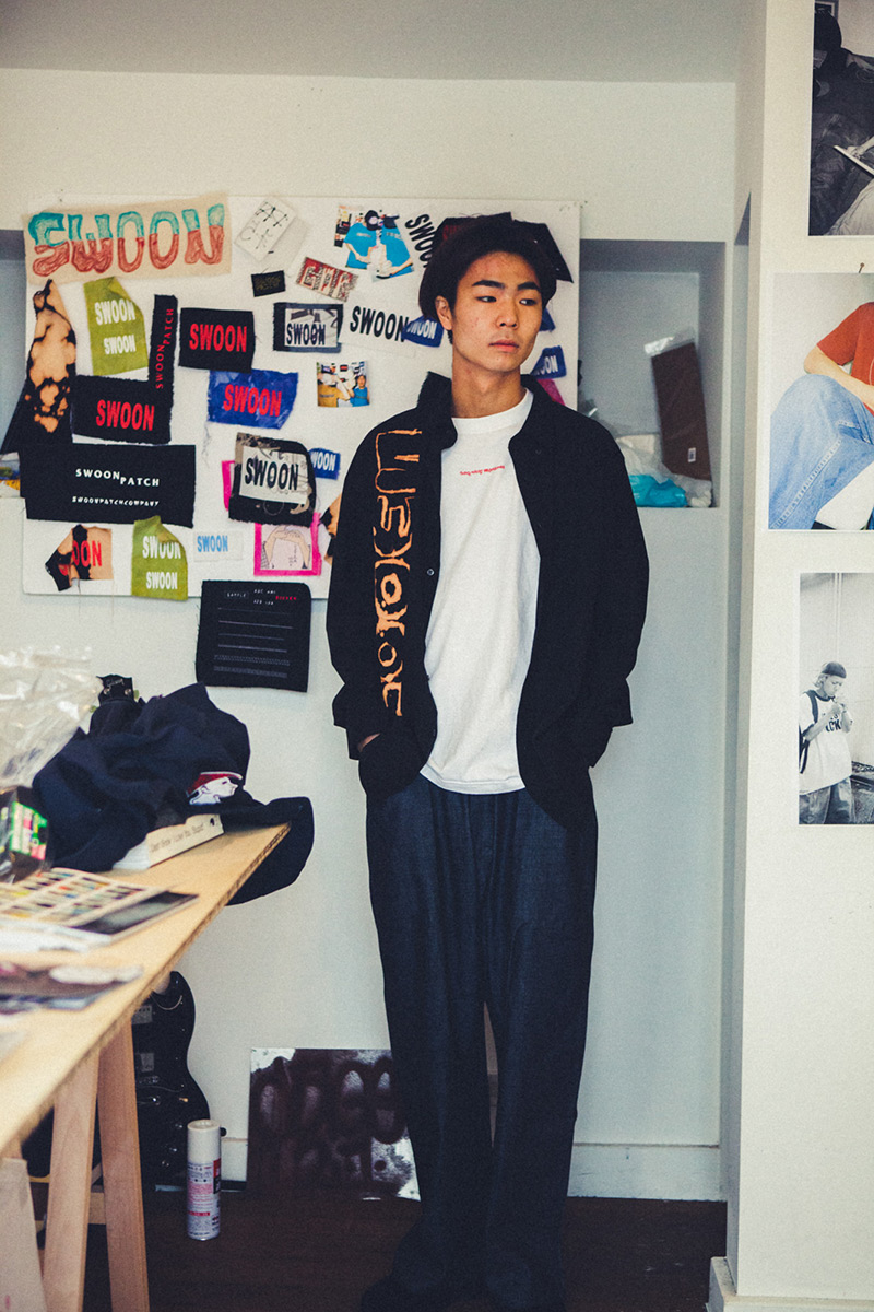 弱冠18歳にして、渋谷は神山町にギャラリーショップ「GIDDRA」を友人たちとオープン。自分たちの制作物をはじめ、自身が本当にイケてると思ったペインティングや写真、ZINE、ウェアなどを展開する。最 近はSWOONというパッチブランドも始動。