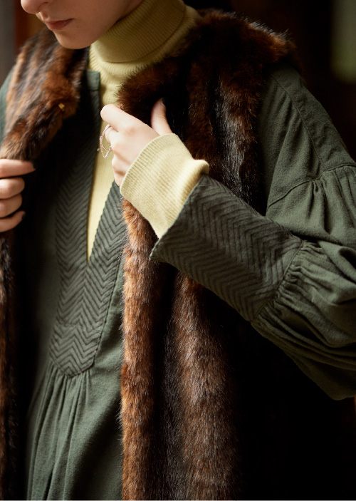 愛しさを覚え、手放したくないもの。 手仕事を感じられる刺繍や細かな装飾がほどこされた1着は、きっとそんな存在になり得る。 思わず手に取ってしまうヒネリの効いたデザインが、 クローゼットをさらに特別なものに。