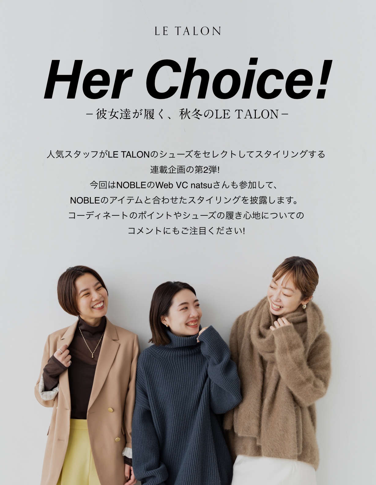 —実際このシューズを着用してみていかがでしょうか?「甲の部分とふくらはぎの切り替えが柔らかい!程よくフィットしているのに圧迫感がないのも良いですね。スクエアトゥのシルエットが綺麗なのでスカートからちらっと見えると素敵だと思います。 普段は柔らかいカラー合わせが好きですが、この冬はモノトーンのスタイリッシュな合わせにも挑戦してみたいなと思っているんですよ。」
