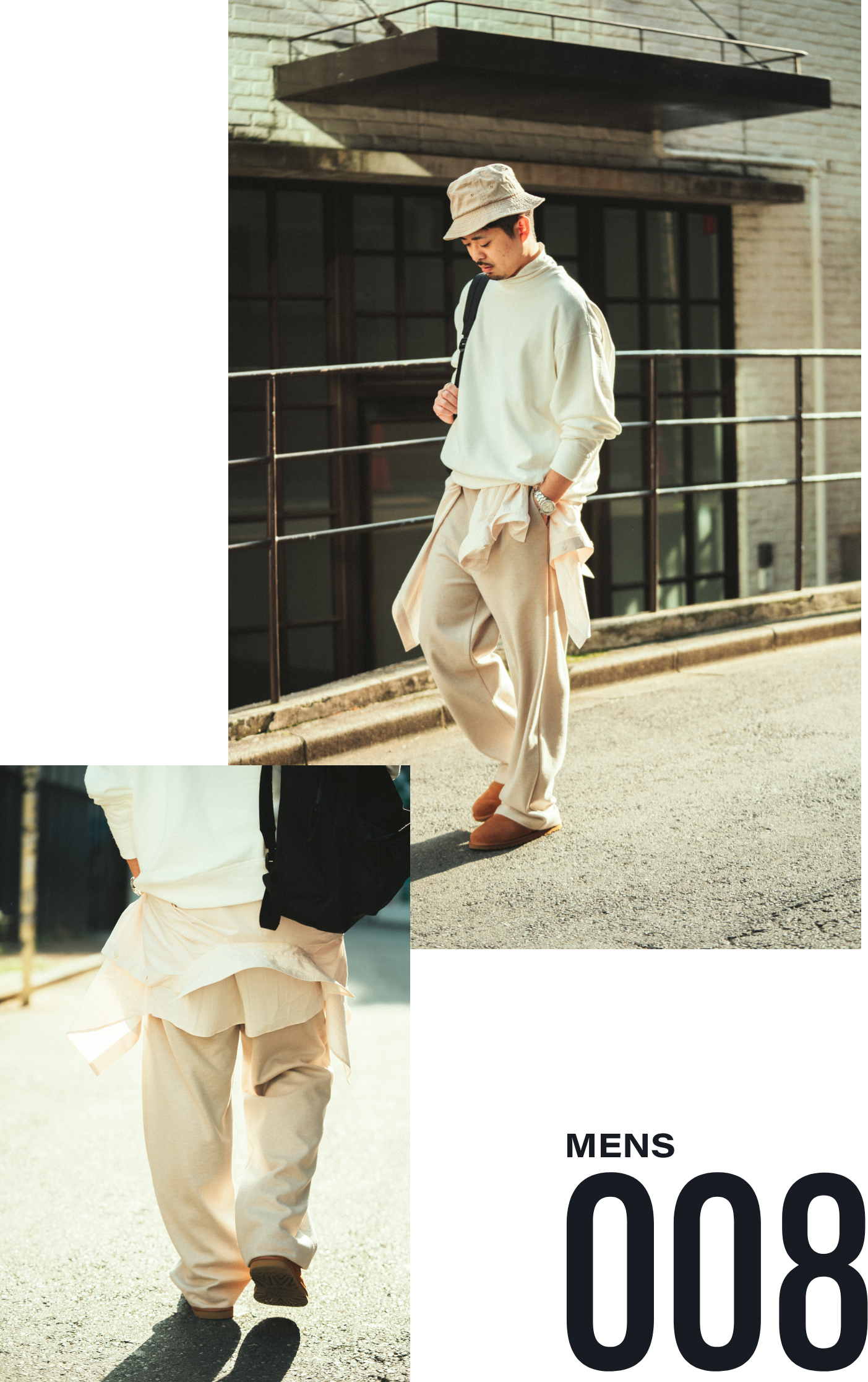 スウェットを巻いて程よいアクセントを着けた着こなしに。