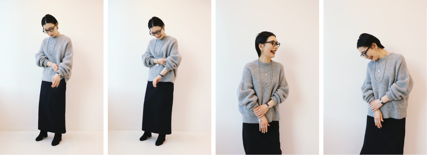 グレーニットやモノトーンのコーディネートにおすすめです。