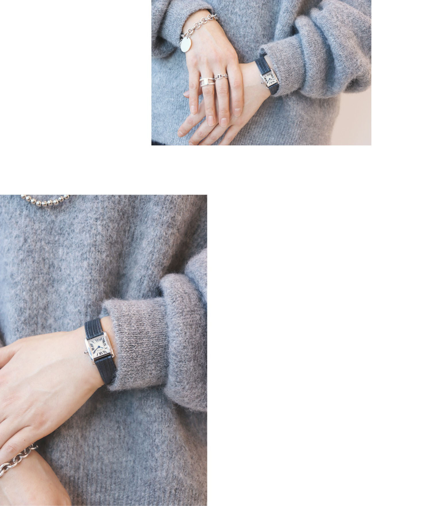 18kホワイトゴールドは、シルバーアクセサリーとの組み合わせが相性抜群。