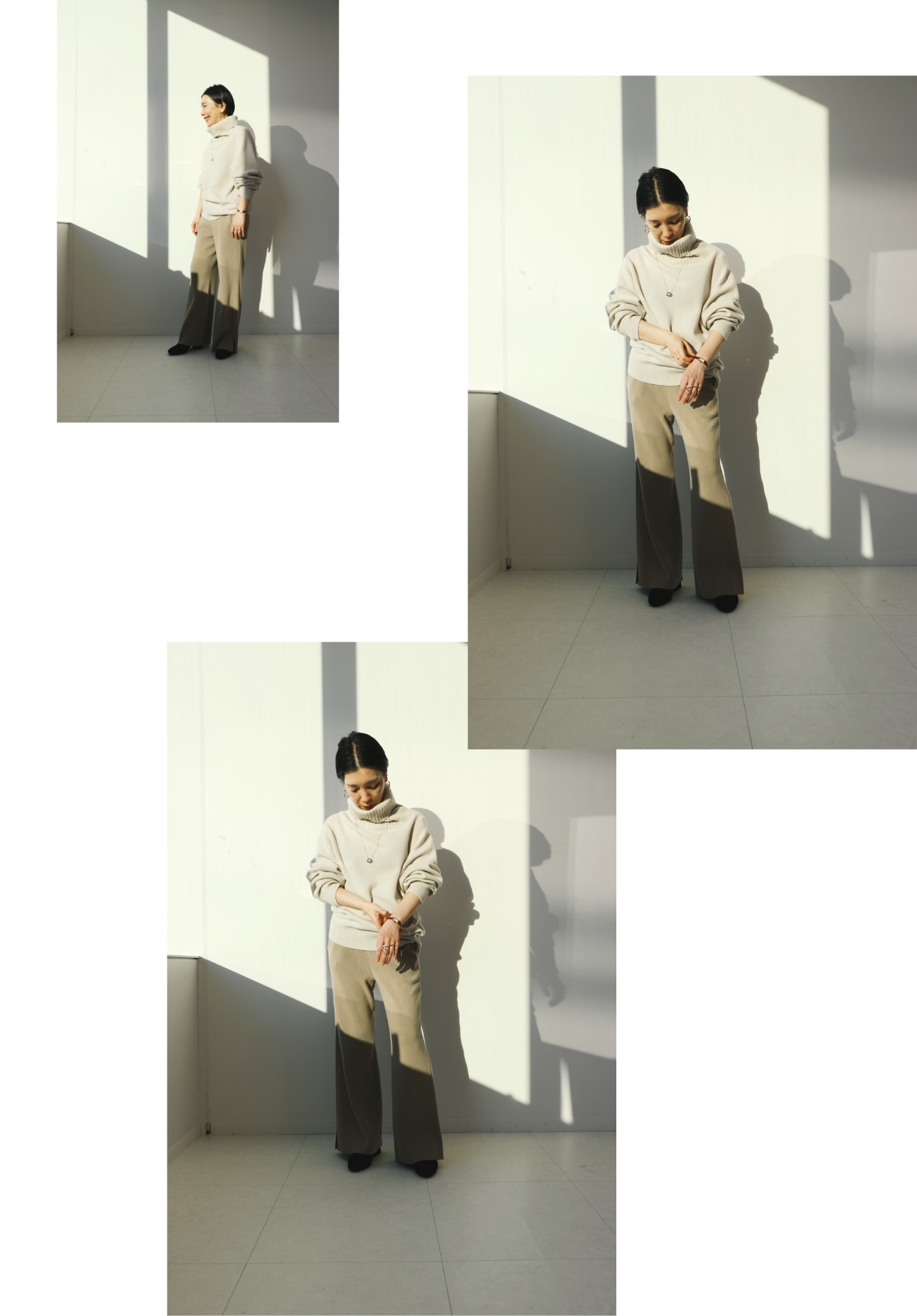 ホワイトニットで引き立てて、いっそう上品なニットコーデにブラッシュアップ。
