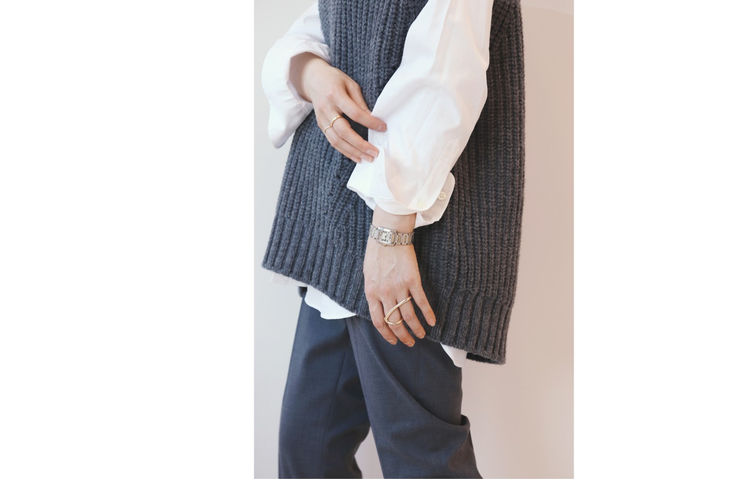ゴールドアクセと相性の良い色合わせや、ミニマル&クリーンなムードが今の気分にもフィット。