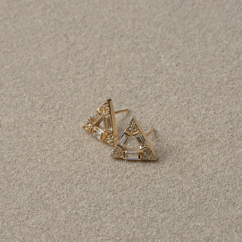 世界の文明で3という数字は神聖な数字として扱われ、三角形はエネルギーを集め放出できる図形と考えられてきました。三角形の角が上向きだと成長や上昇を、下向きだとバランスの取れた安定した状態を表します。身につけることで集中力が養われ、生命力が活性化されていくよう。三角形モチーフは、自分の道を自力で切り開き進んでいく強さを高めたいあなたに似合うはず。