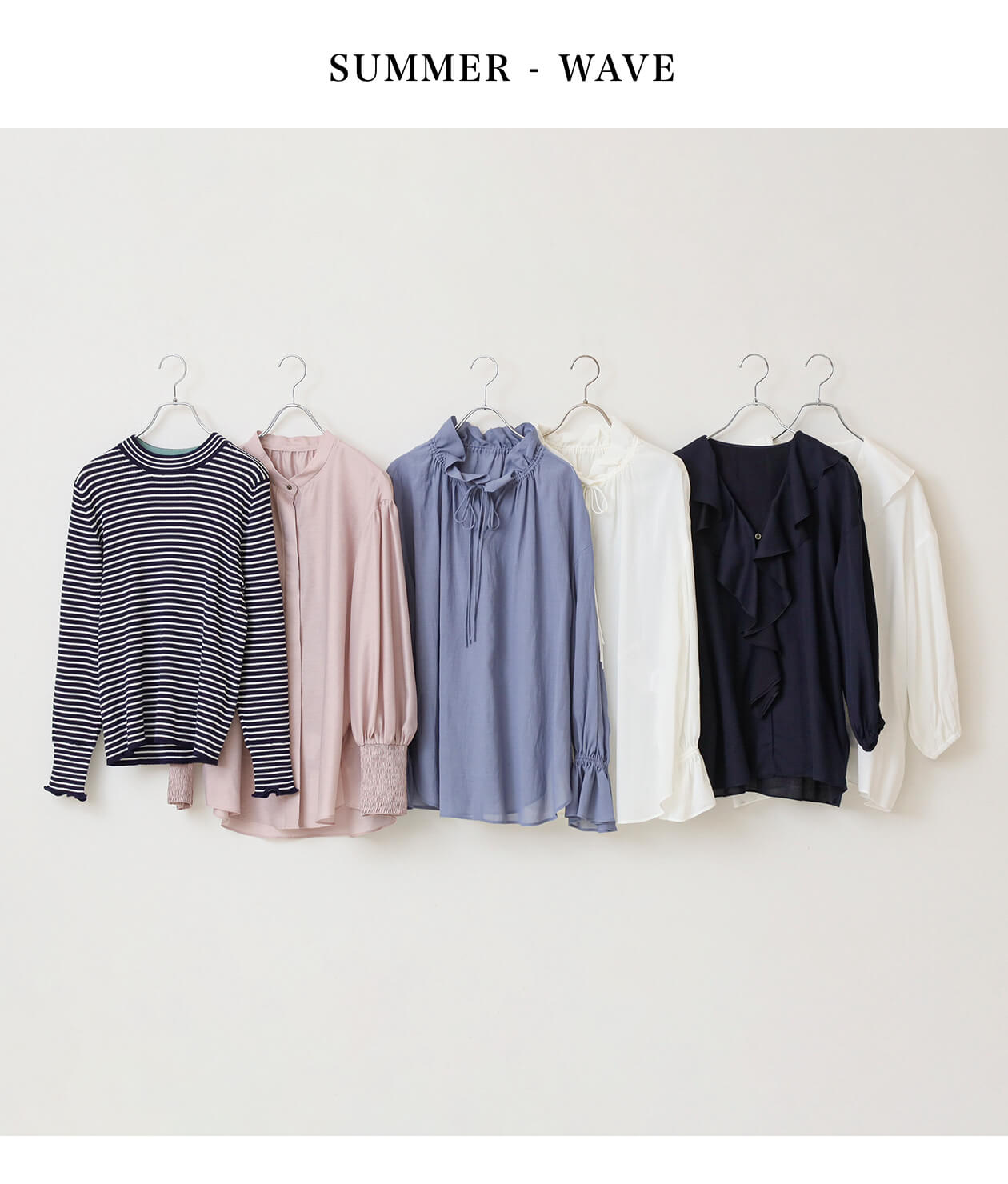 - サマータイプの中で幅広く選べるのが、明るめブルーなどの寒色カラー。シャツで取り入れるのにぴったりです。コクーンシルエットやバックリボンなど、ひとくせあるデザインで差をつけて。落ち着きを取り入れたい方はニュートラルなグレーもおすすめ。