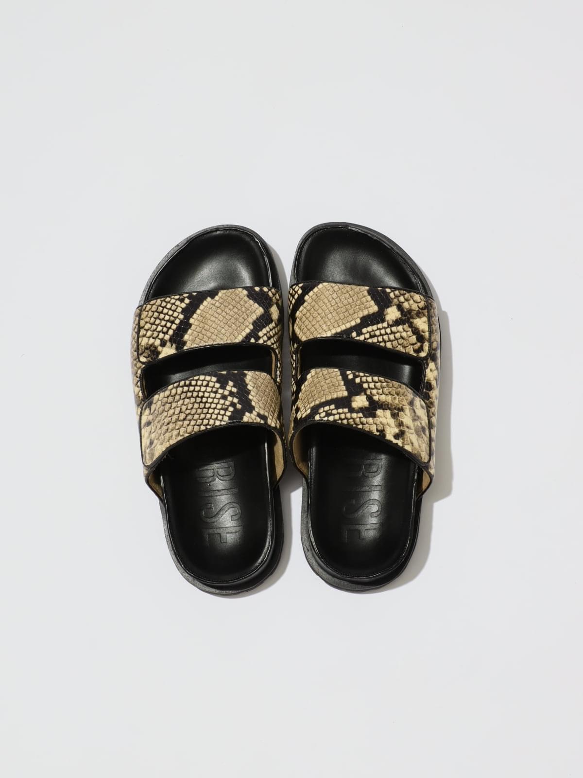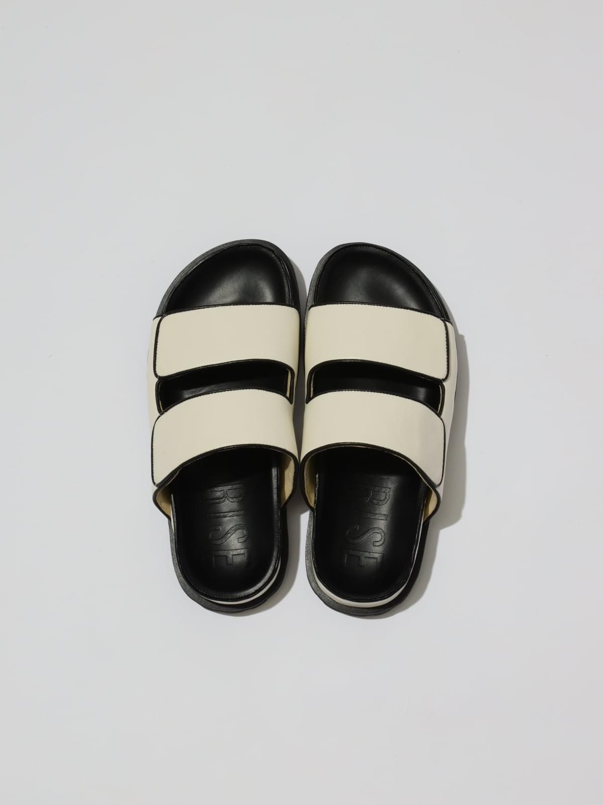 レザーVibramダブルベルトミュールサンダル / Le Talon GRISE